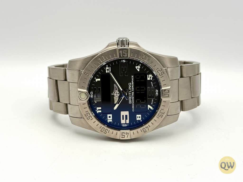 Founded in 1884 in Saint-Imier, Switzerland, Breitling is known for its strong aviation heritage and precision instrument watches. The Aerospace collection represents the brand’s focus on lightweight materials and multifunctional pilot timepieces.