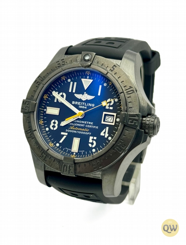 This Avenger Seawolf is the beautiful 45mm black and yellow Limited Edition version. It comes as full set with a brand new rubber strap. The watch is in very good condition and comes with one year warranty. Great original Breitling!