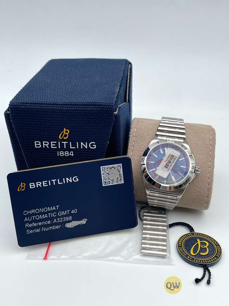 This lovely blue Chronomat is from 2023, comes as a full set and is new & unworn!