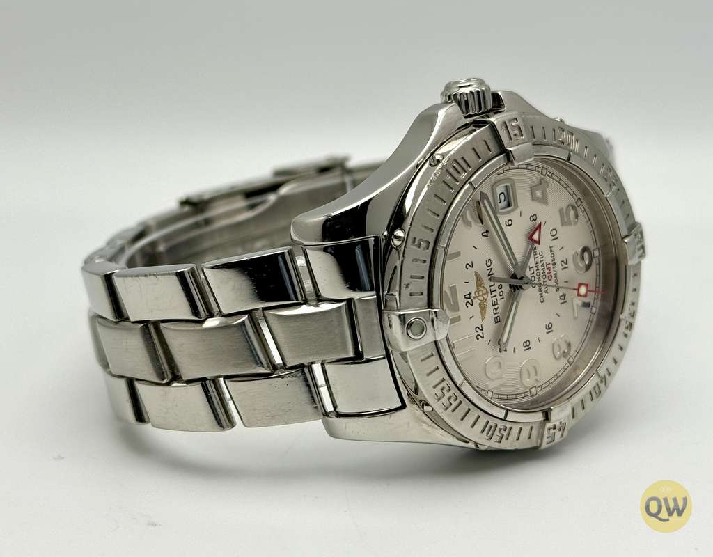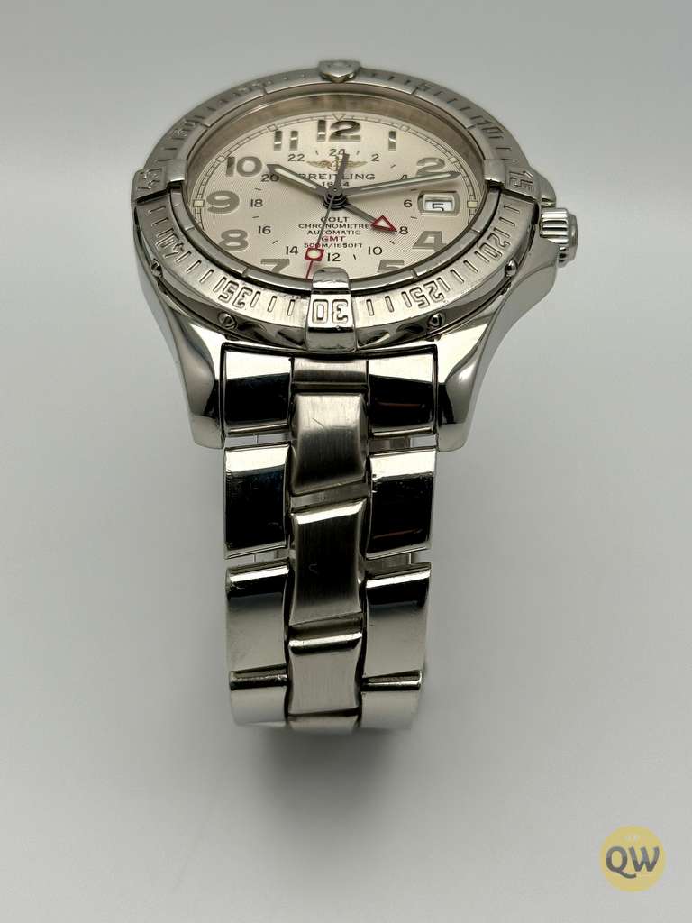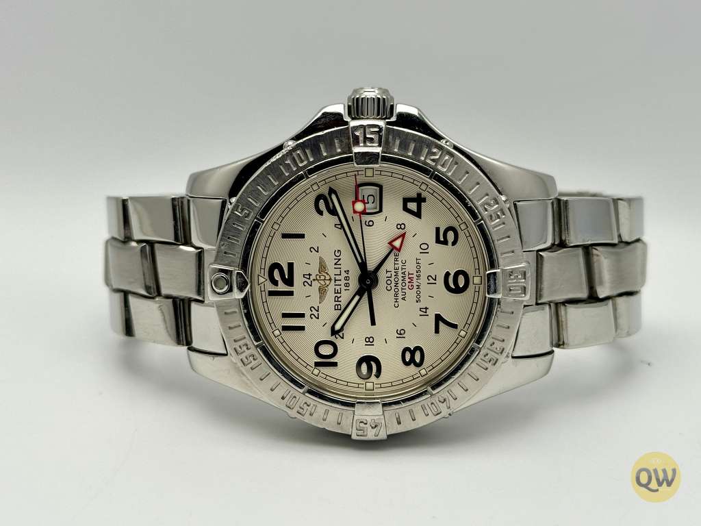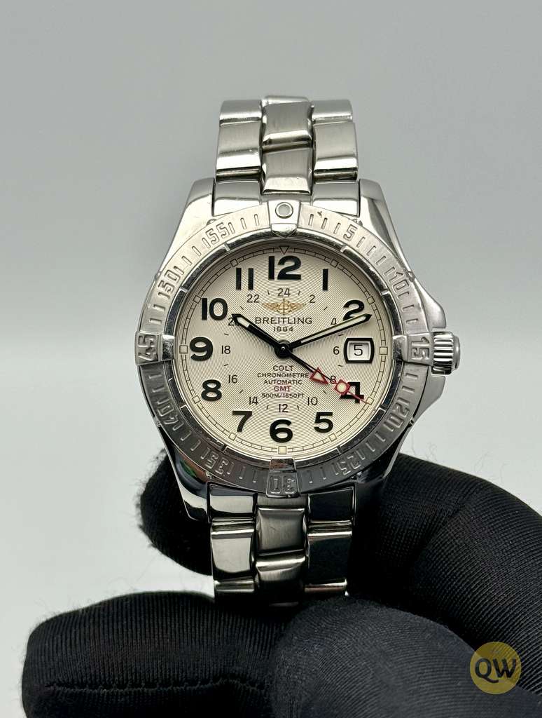 Founded in 1884 in Saint-Imier, Switzerland, Breitling is renowned for producing high-precision instrument watches with strong roots in aviation and professional travel. The Colt collection reflects this heritage, offering robust construction, clear legibility, and practical functionality. The addition of a GMT complication makes this model especially suited for frequent travelers.