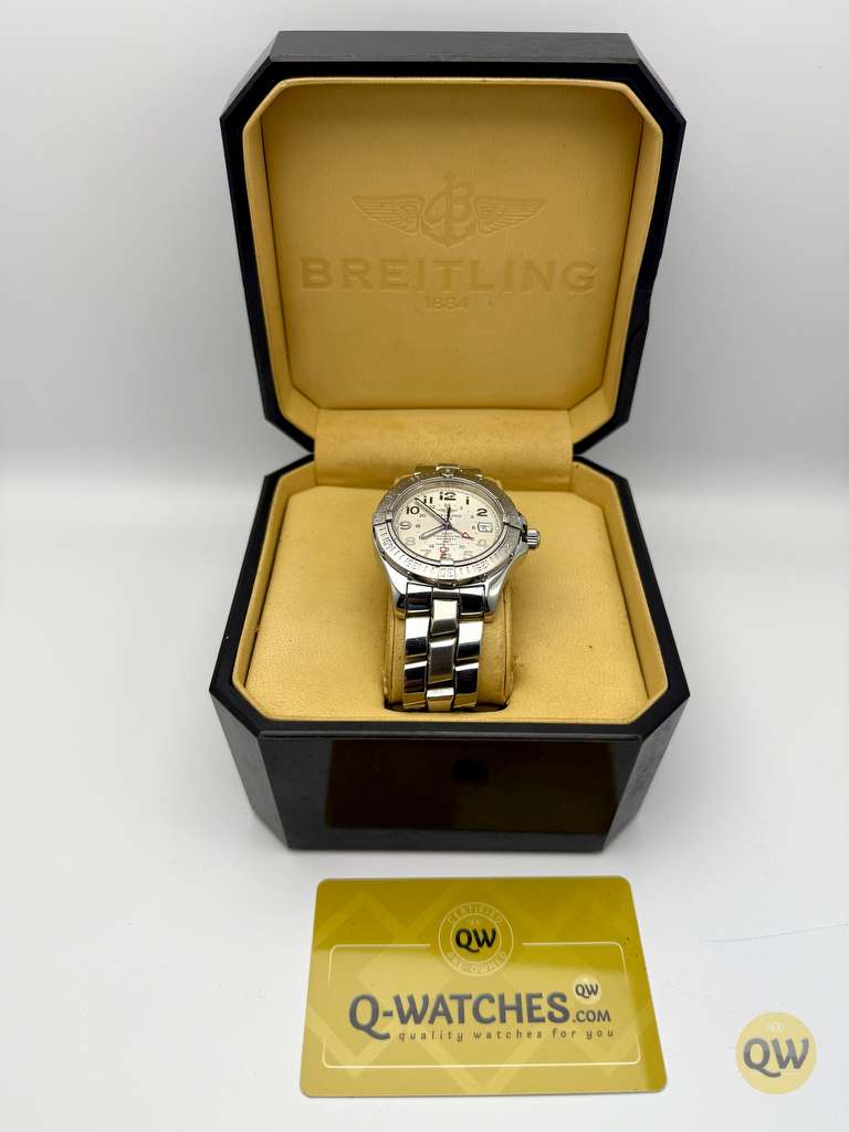 This Breitling Colt GMT Automatic is in good condition with some traces of use, there is a small dent in the case (see last picture). Comes in the Breitling box with our 3 months warranty.