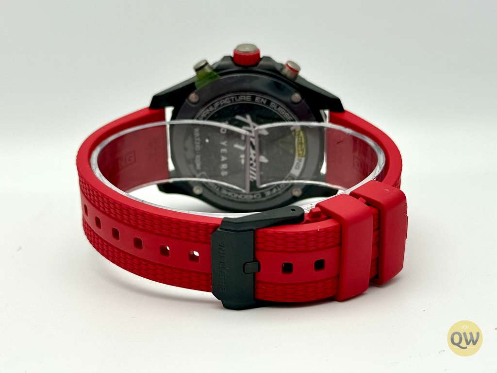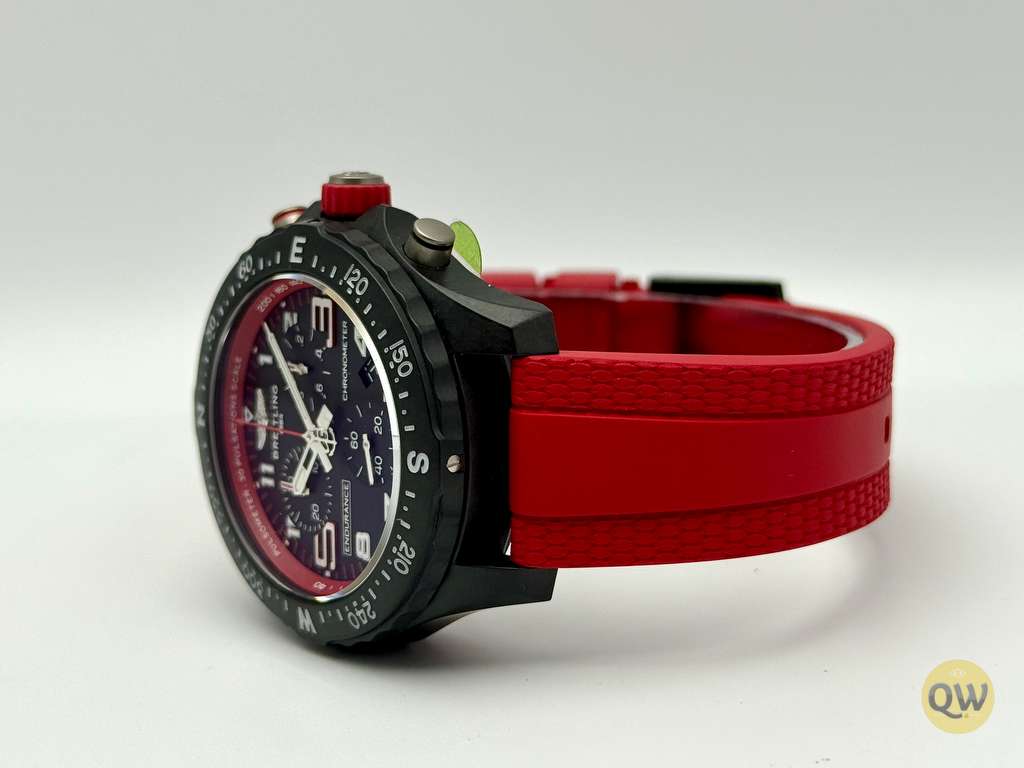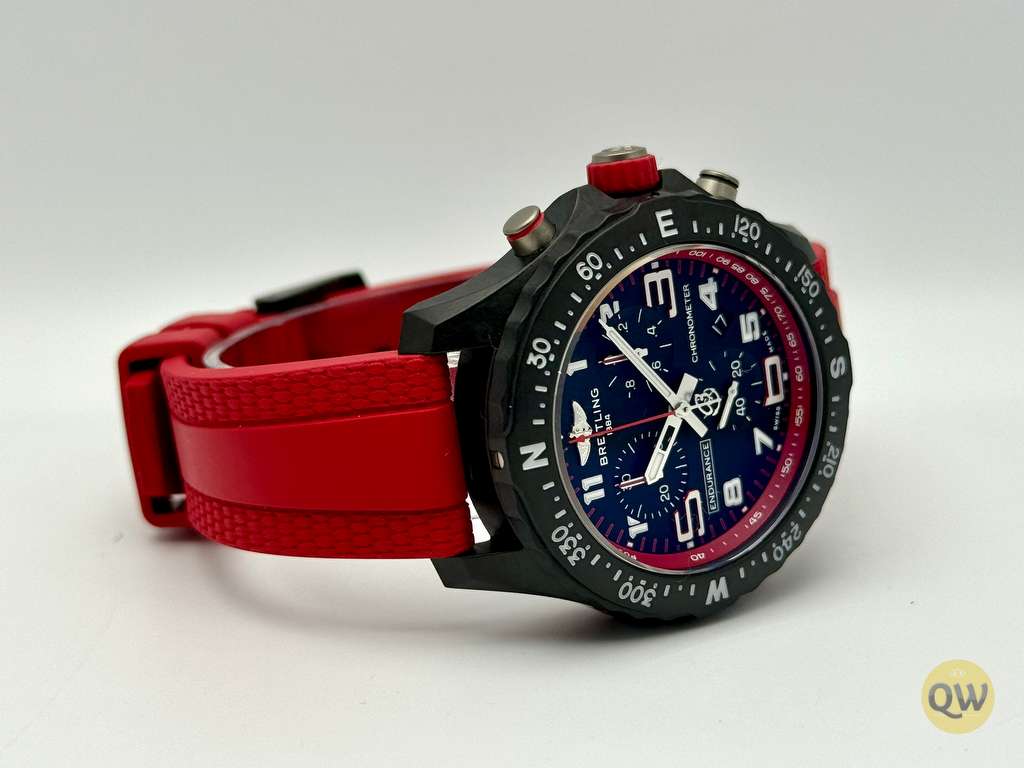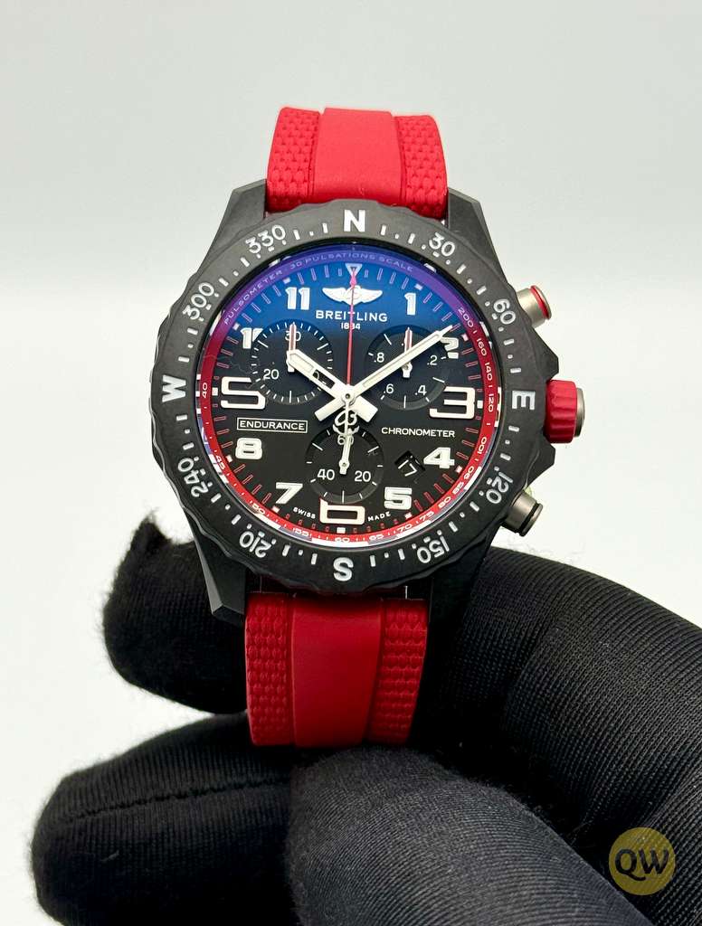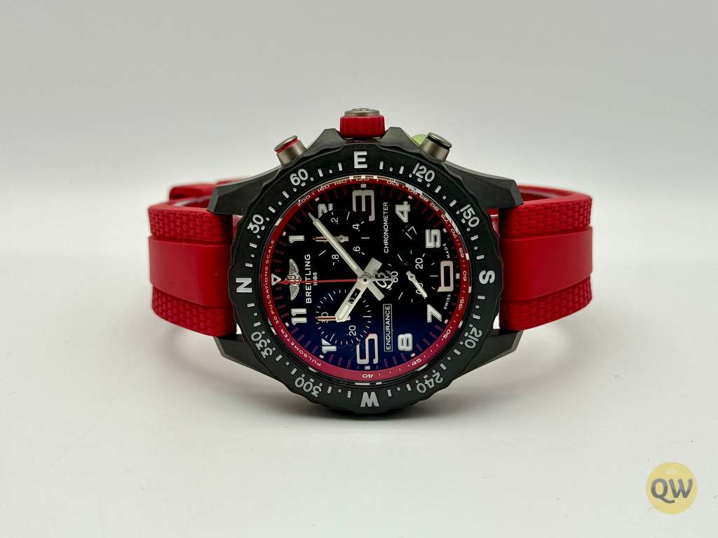 A scratch-resistant sapphire crystal with anti-reflective coating ensures excellent legibility, while the bidirectional rotating compass bezel enhances outdoor functionality. With 100 meters of water resistance, the Endurance Pro 38 is built to withstand demanding sporting and everyday conditions. The watch is fitted on a red rubber strap with a Breitlight pin buckle, ensuring lightweight comfort and a secure fit.