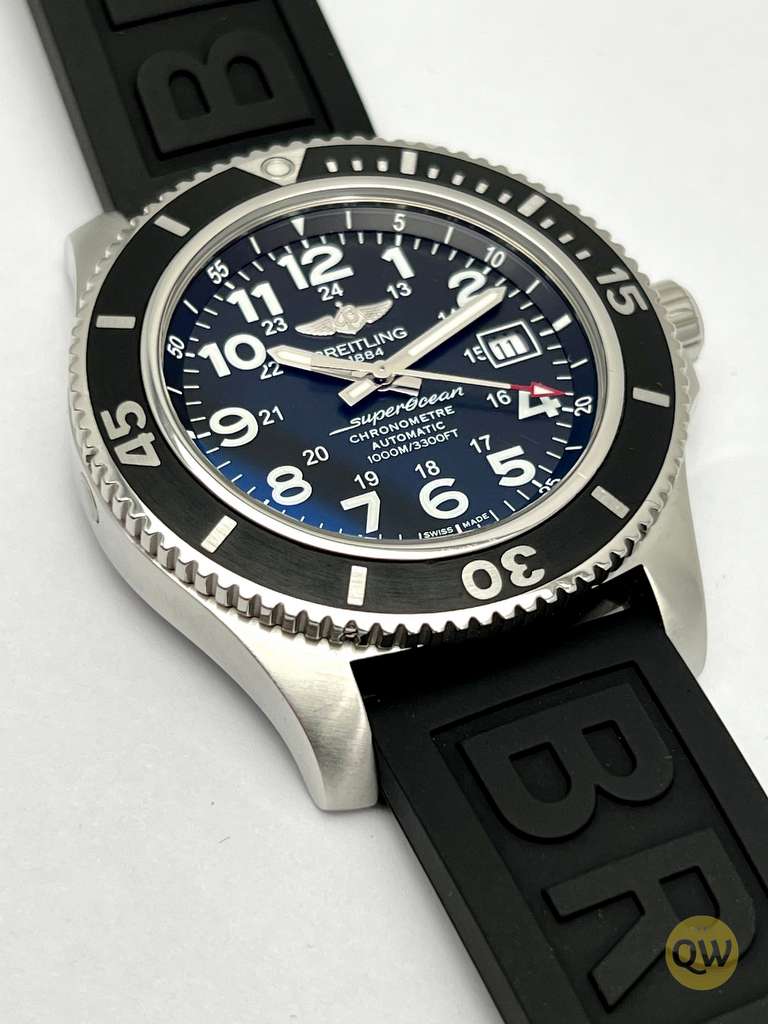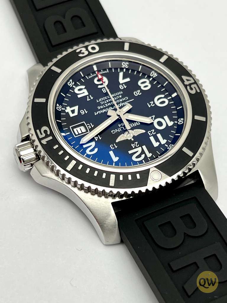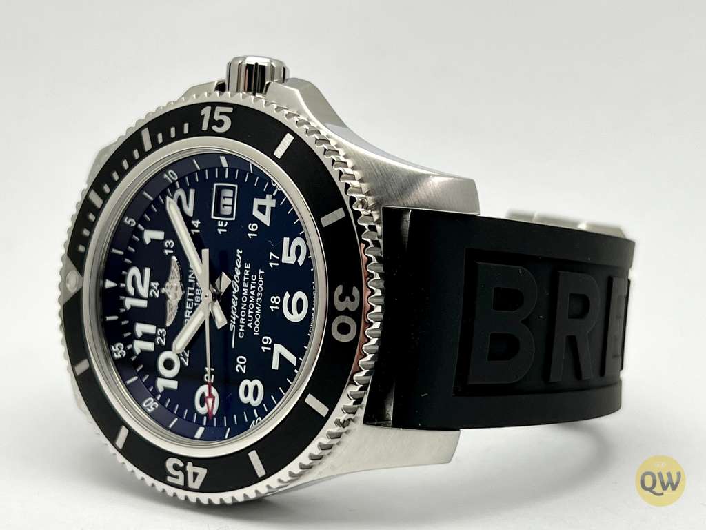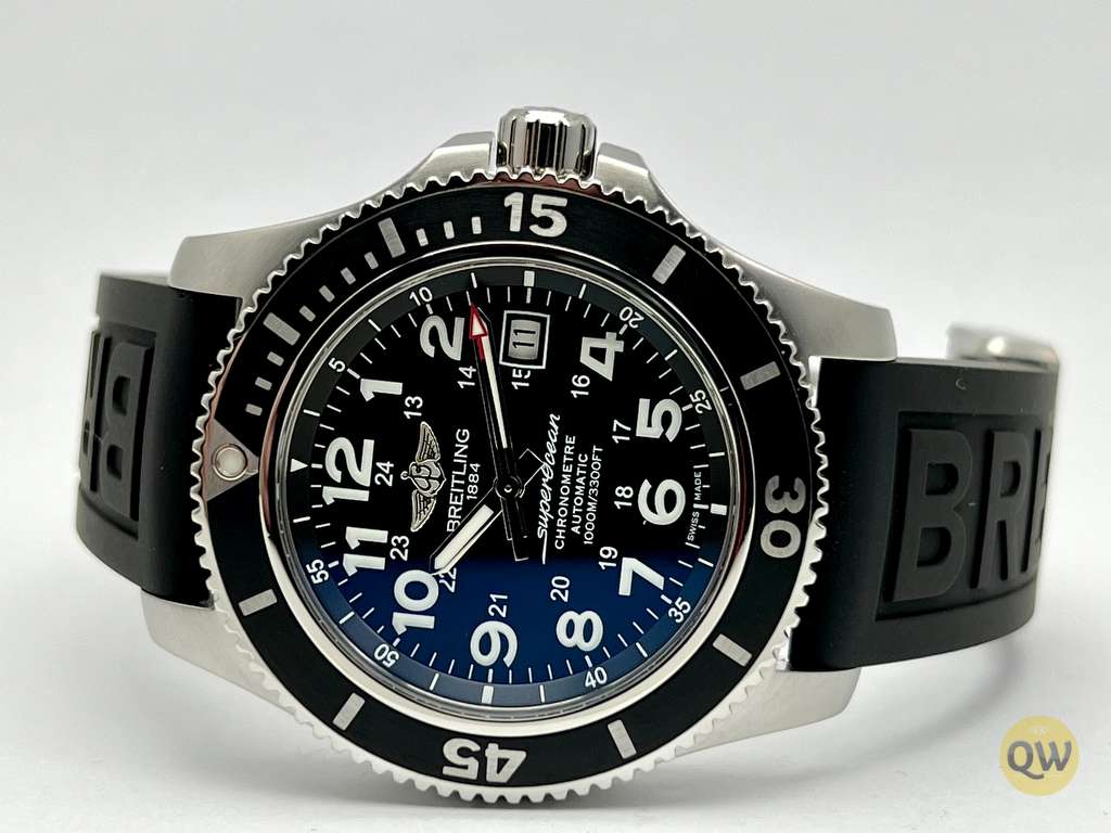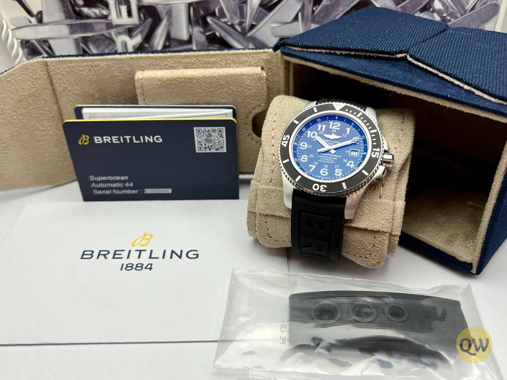 This SuperOcean is one of the last old models 44mm delivered by a Breitling in the Netherlands and comes on the black rubber strap with the high-end folded clasp. In mint condition, full set and factory warranty until 10-2025!