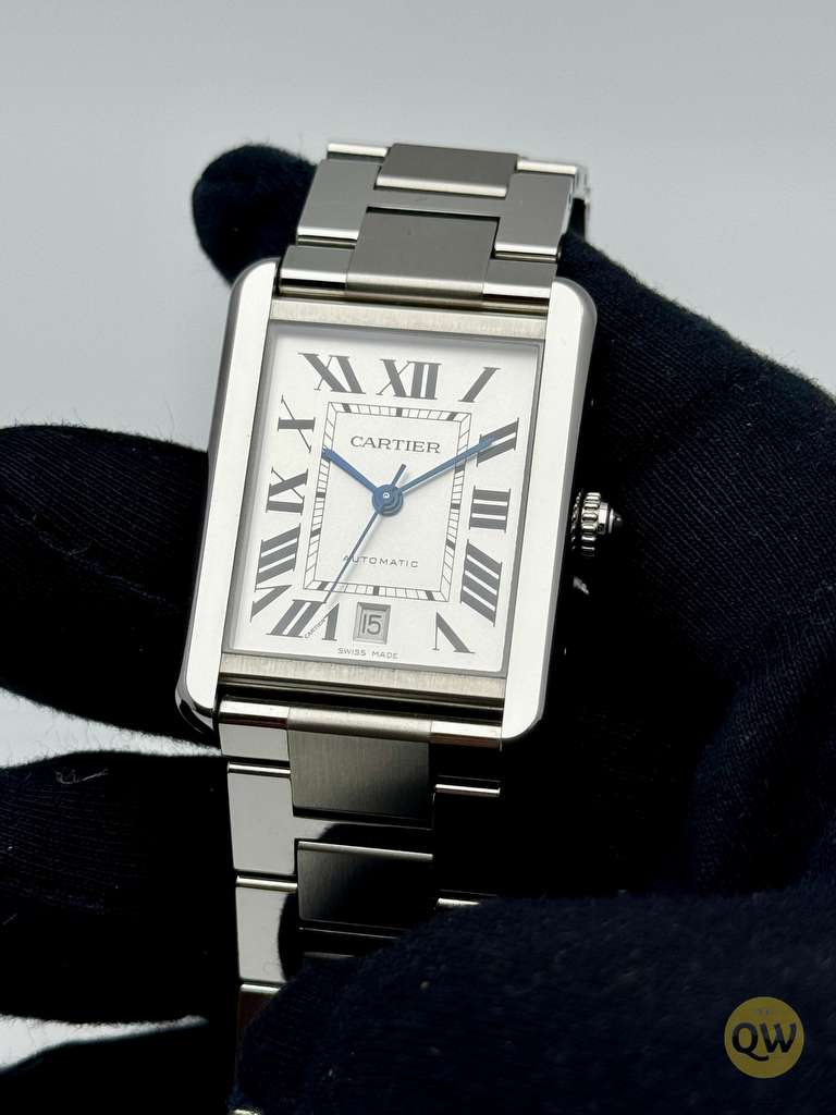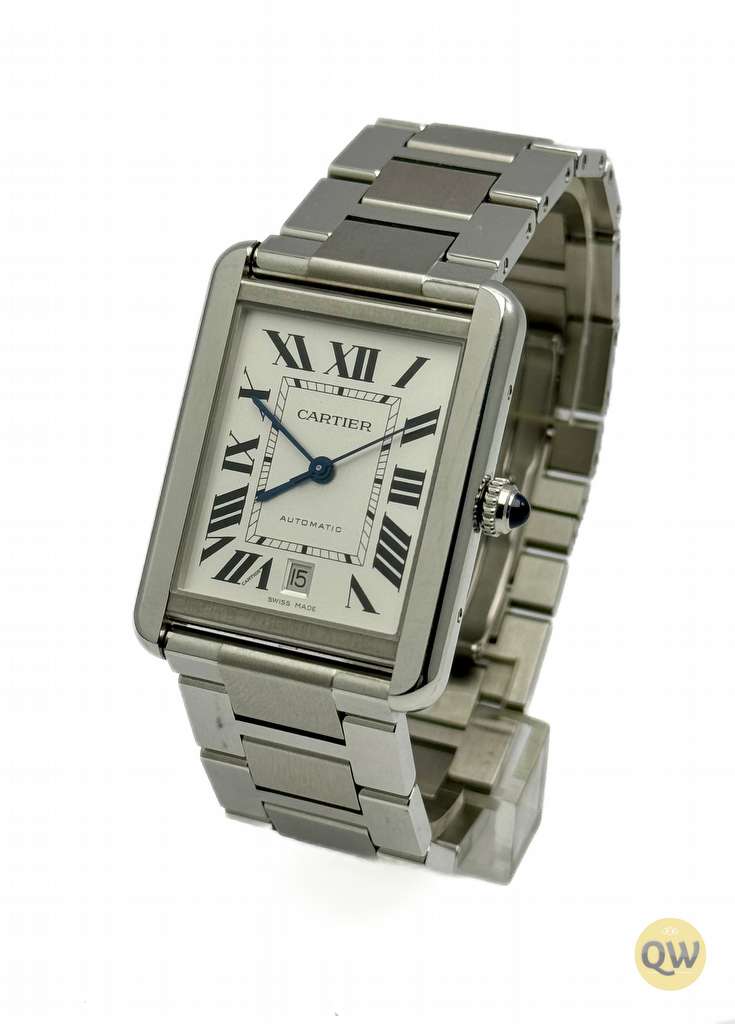 This is a modern Cartier Man’s Tank Solo reference 3515 in a stainless steel case and great overall finish. This Cartier Tank XL is in very good to near mint condition, only minor hairlines on the polished parts. 1 year warranty.