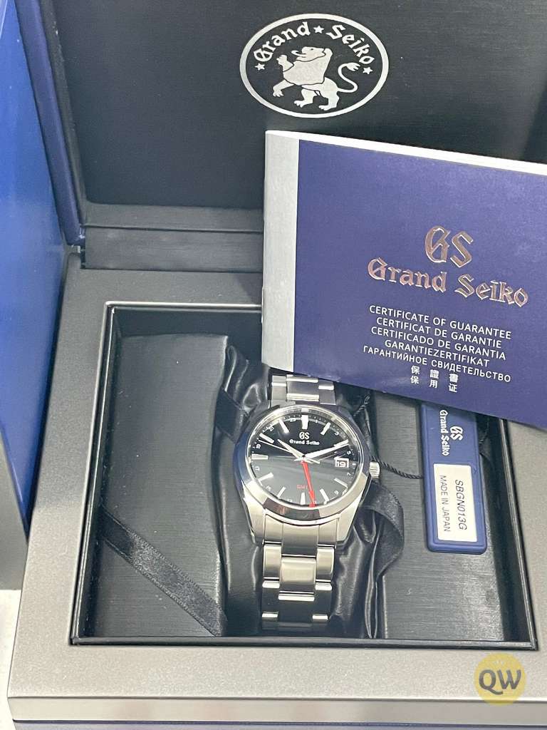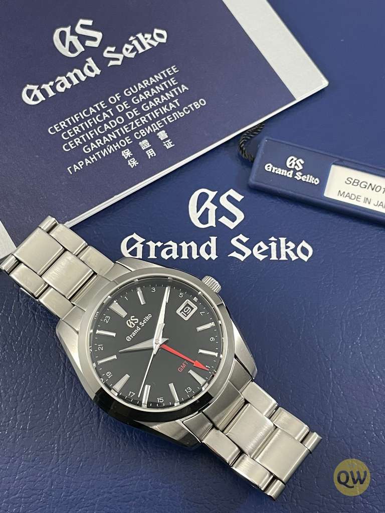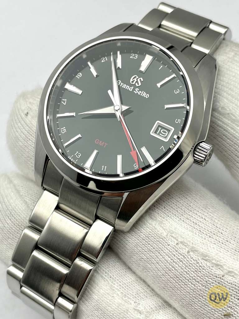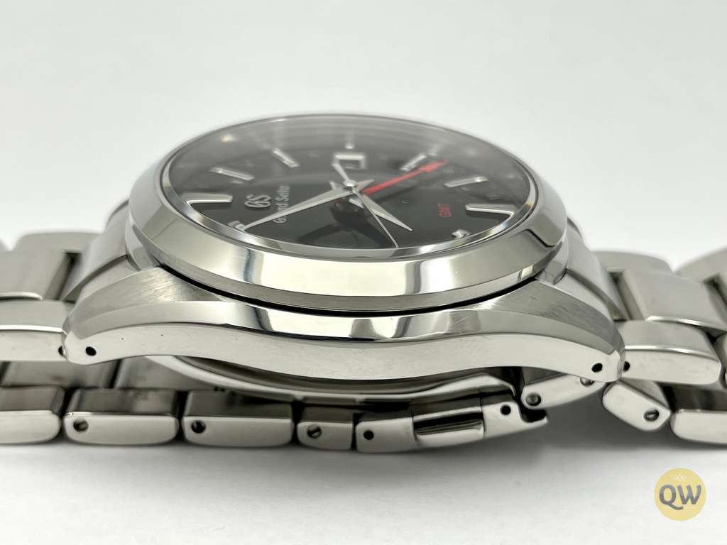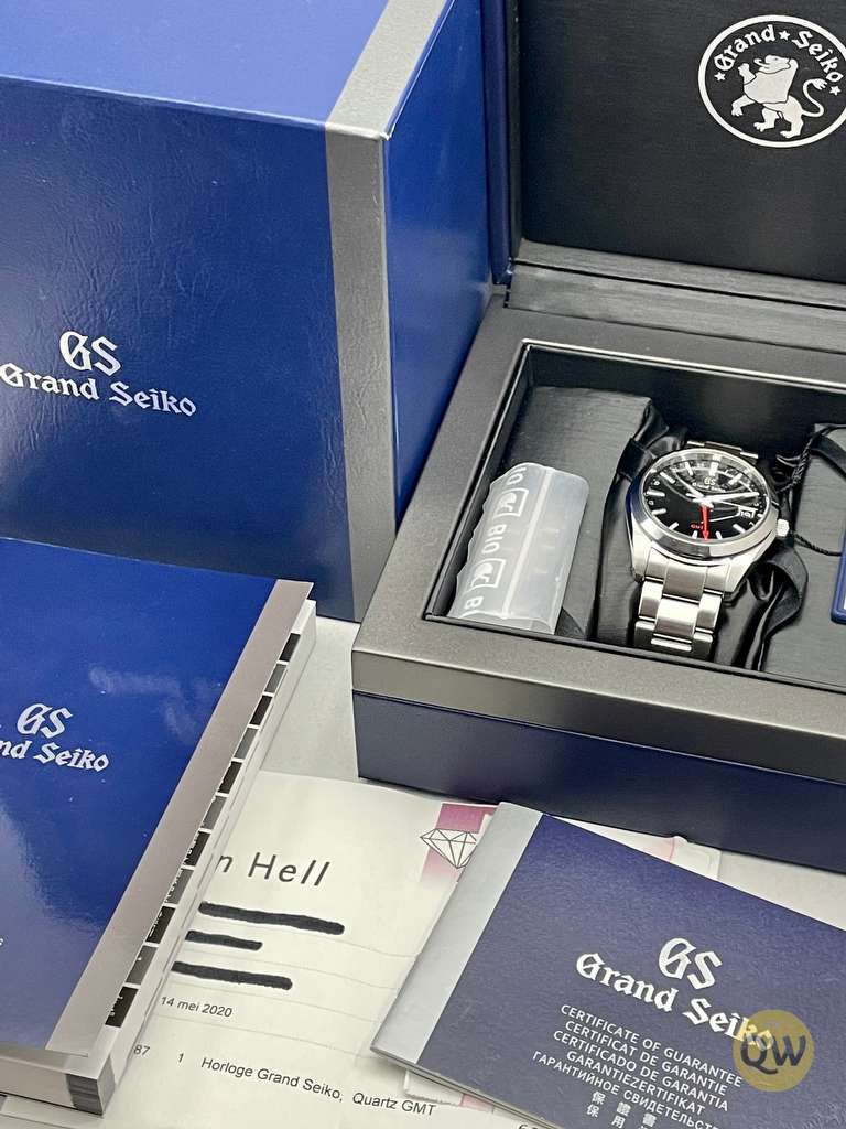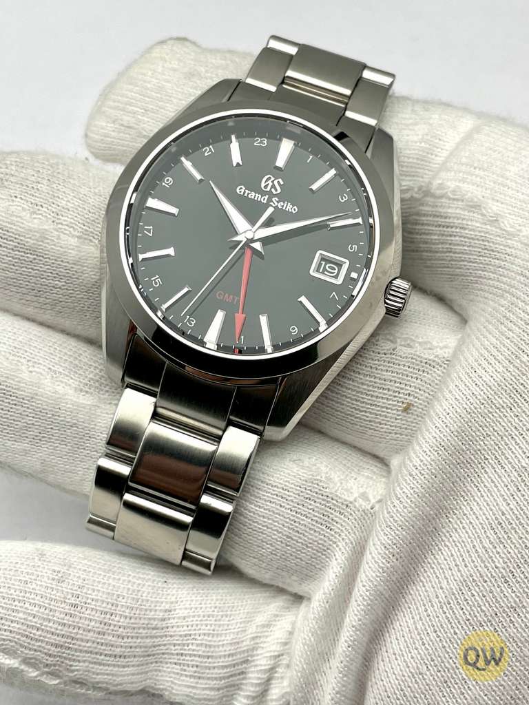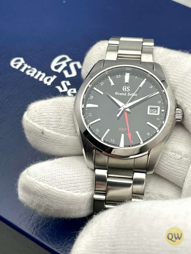 What a great watch this is! Not just a classic Grand Seiko with the new logo, but also the first 9F quartz movement with GMT function from the Heritage collection. A classic silver design and black dial with red hand for a subtle sporty accent.