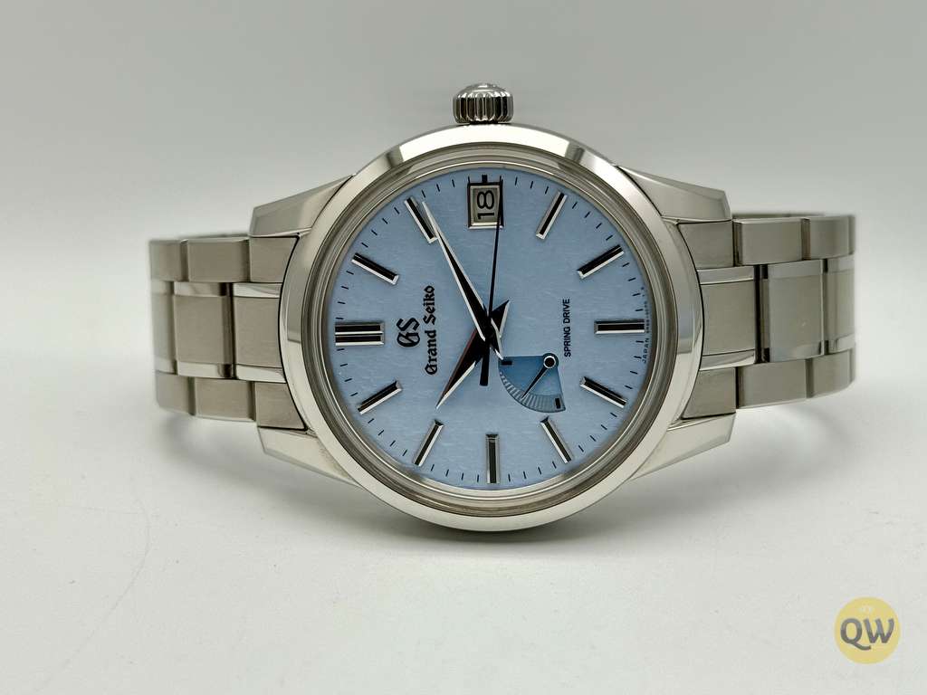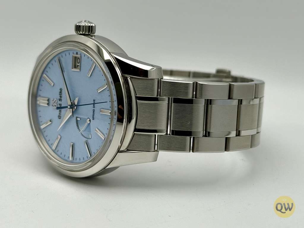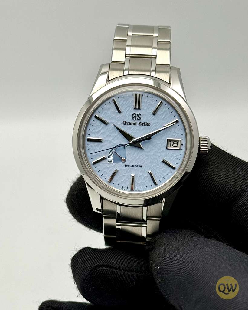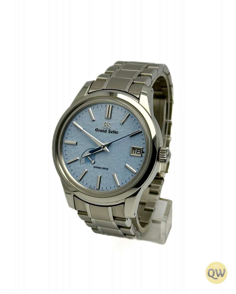The Grand Seiko Spring Drive “Skyflake”, reference SBGA407, features a 40.2 mm stainless steel case with Zaratsu-polished surfaces and a light blue textured dial inspired by drifting snow under a clear sky — a softer interpretation of Grand Seiko’s iconic “Snowflake” design. Powered by the in-house Grand Seiko caliber 9R65 Spring Drive movement, it delivers a 72-hour power reserve, ±1 second per day accuracy, and a smooth, gliding seconds hand that characterizes the unique Spring Drive technology. Functions include hours, minutes, central seconds, date display at 3 o’clock, and a power reserve indicator at 8 o’clock.