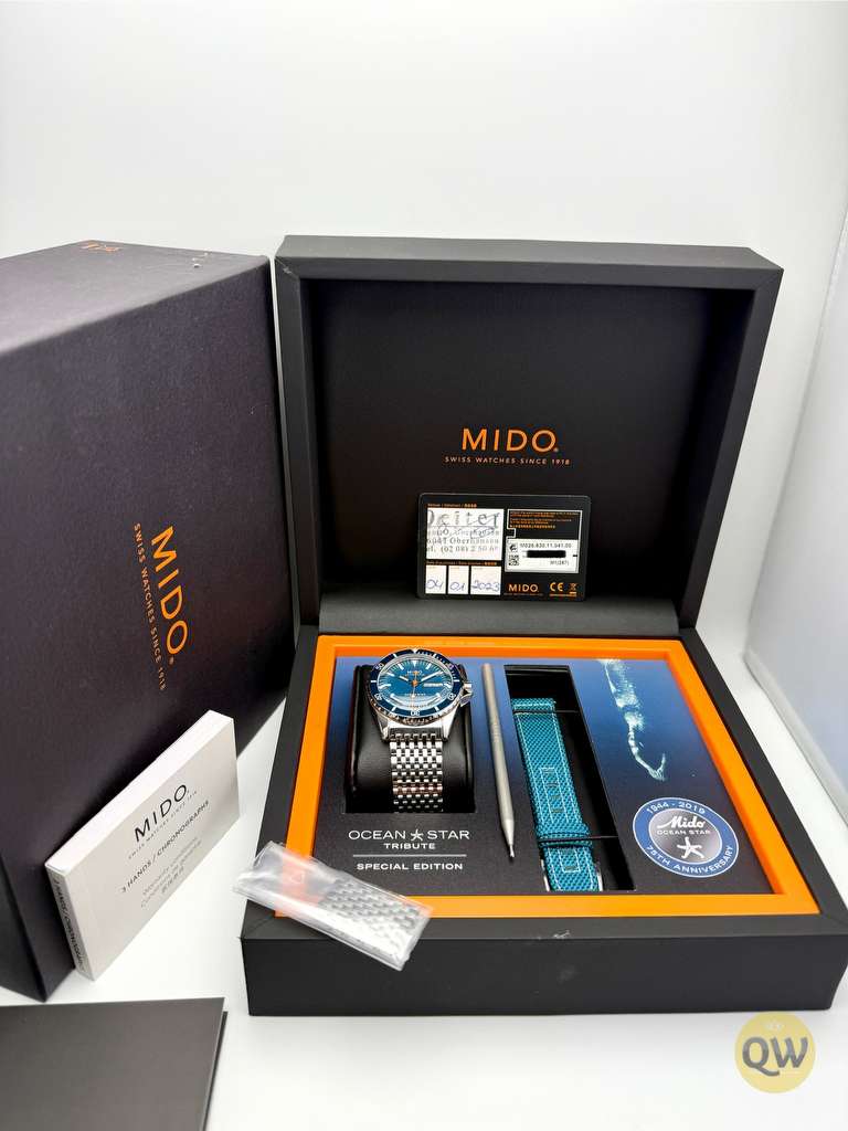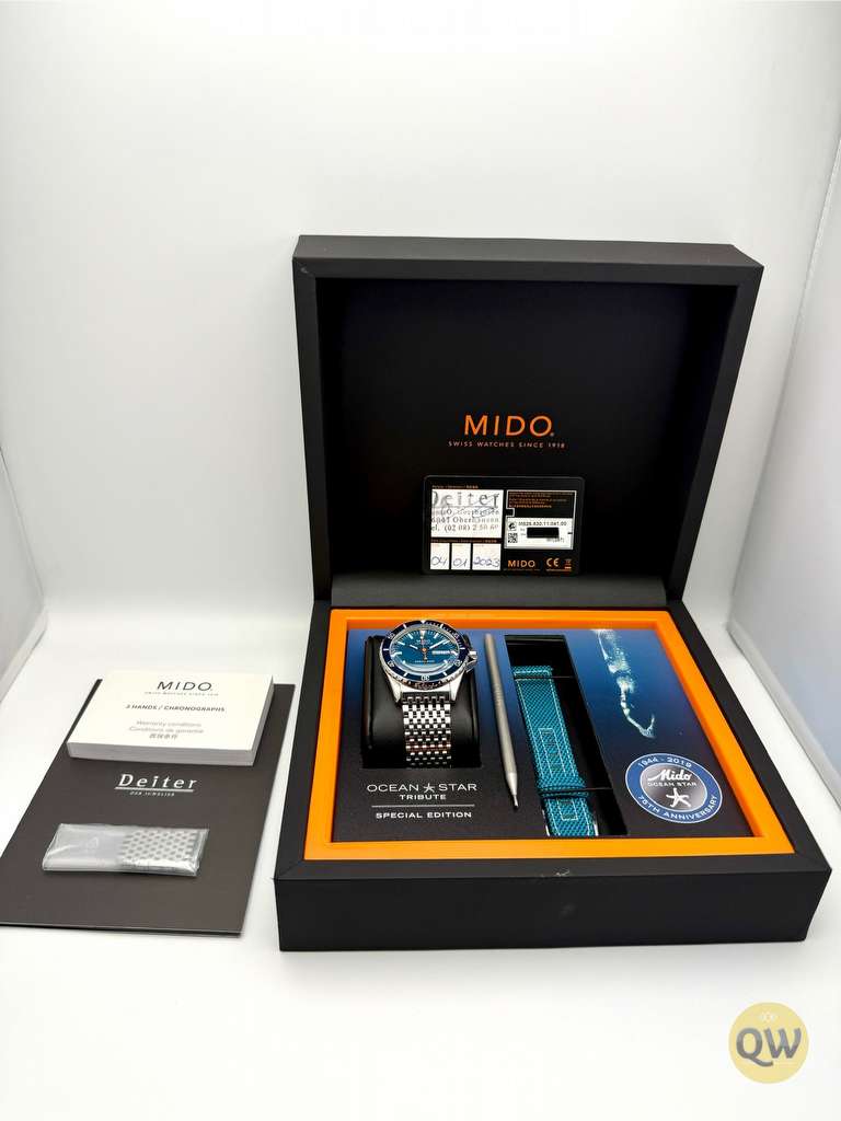 This Ocean Star is a Tribute to the original with the modern ETA Kaliber 80.621 with 80 hours of power reserve and this is the blue Special Edition with the Special Box with the extra Mido strap.