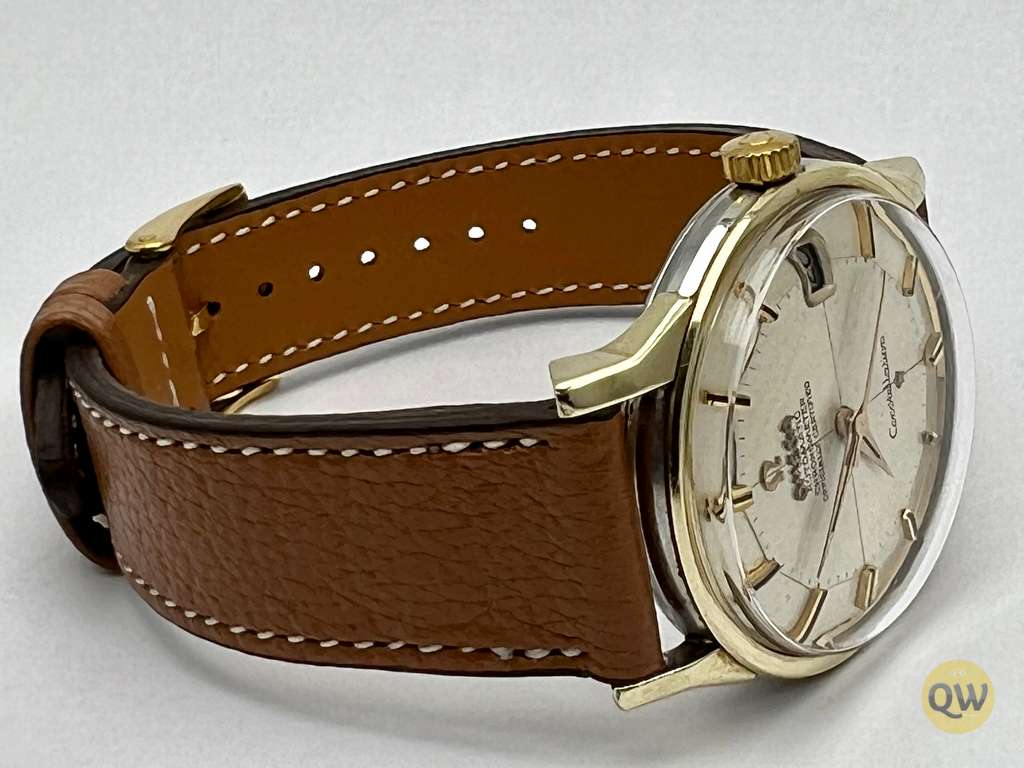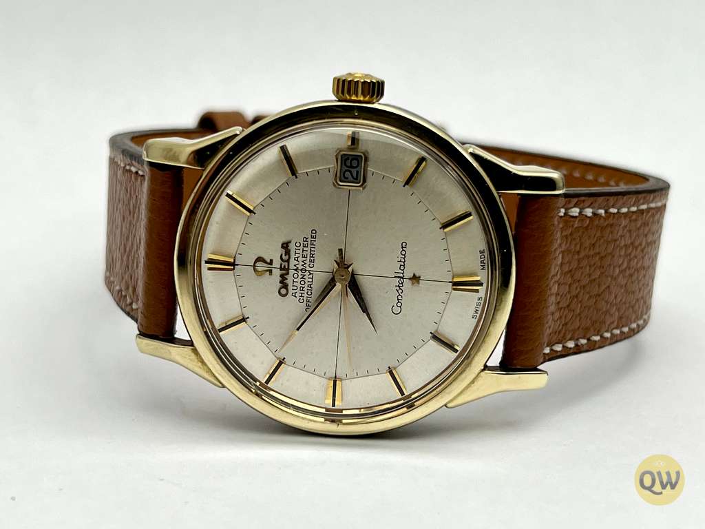 This vintage Costellation "cap gold" is in good original condition with the Omega logo on the plexi. Comes on a fresh new leather strap and in our wooden Q-Watches box and 3 months warranty.