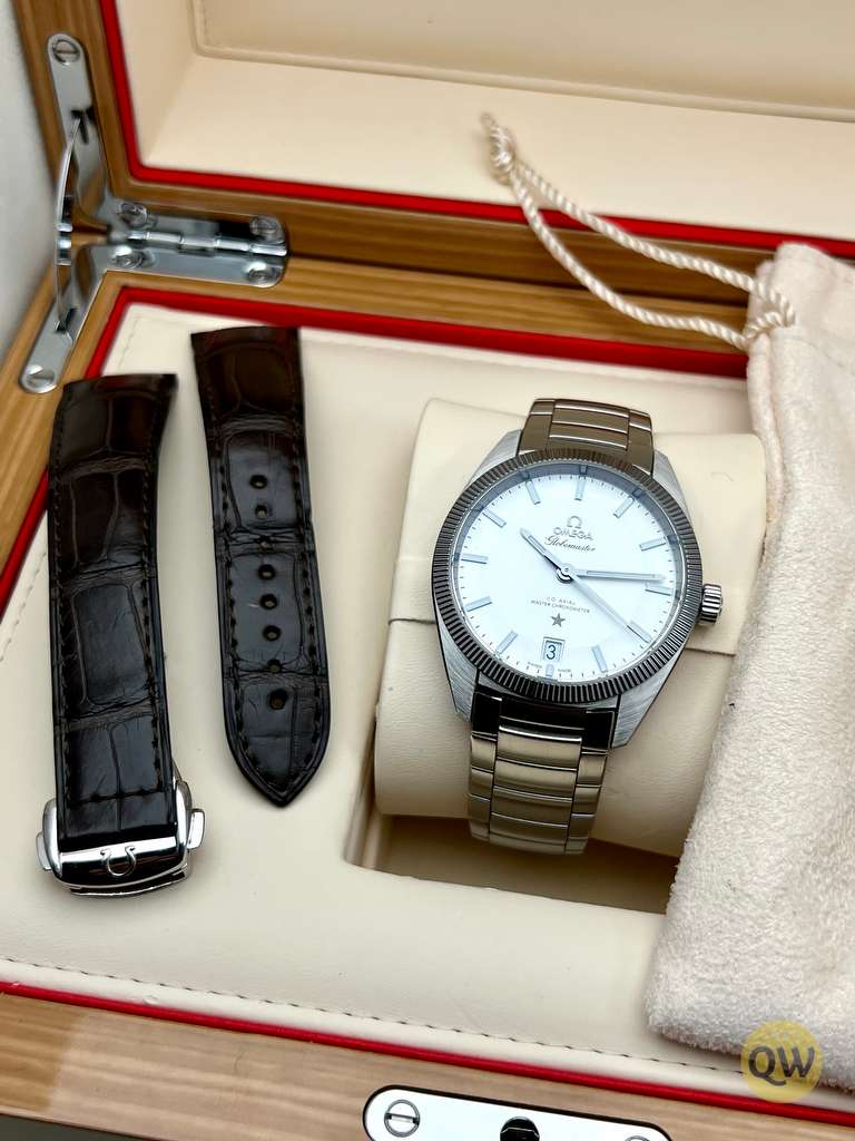 This Globemaster is near mint & full set both with the steel bracelet and a leather strap on the original Omega folding clasp!