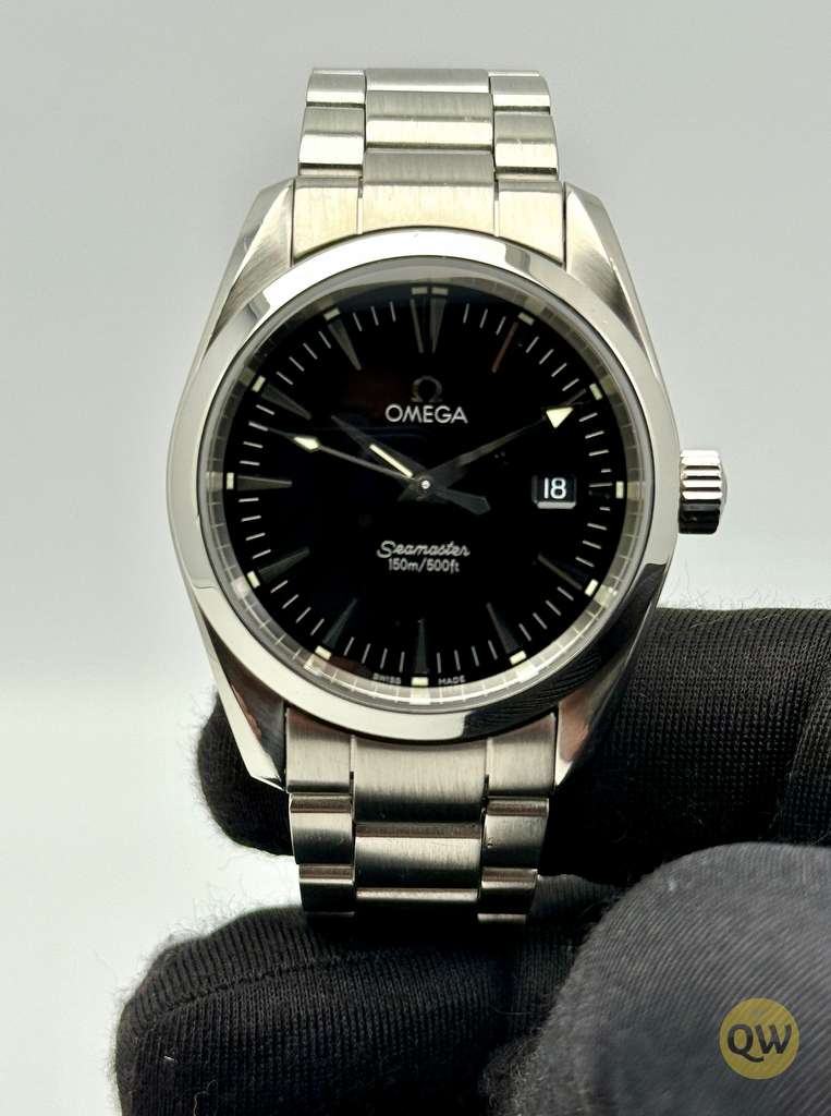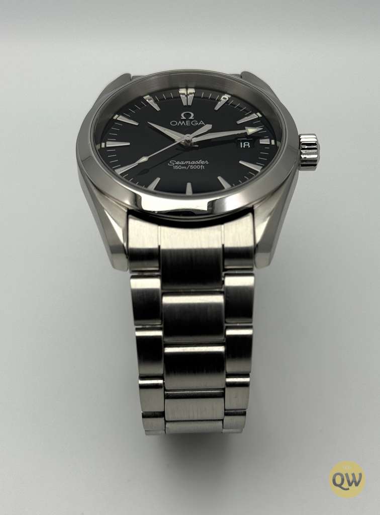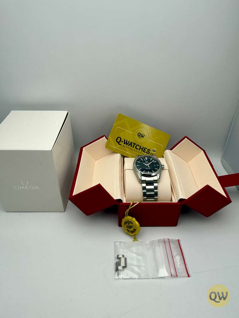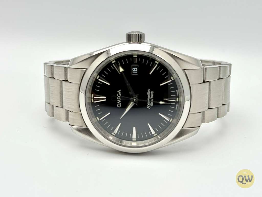 This Omega Seamaster Aqua Terra is in good condition with some traces of everyday use. Comes the Omega travel Box and Q-Watches Goldcard. We have just fitted a new battery and performed a water-resistance test. Great daily watch!
