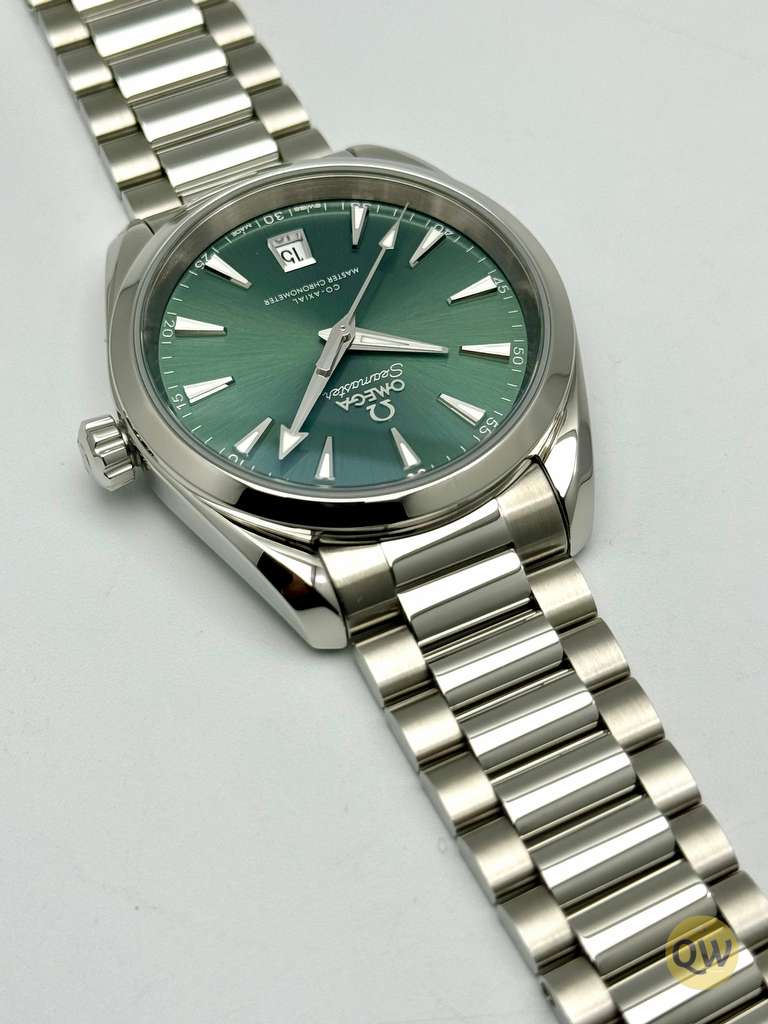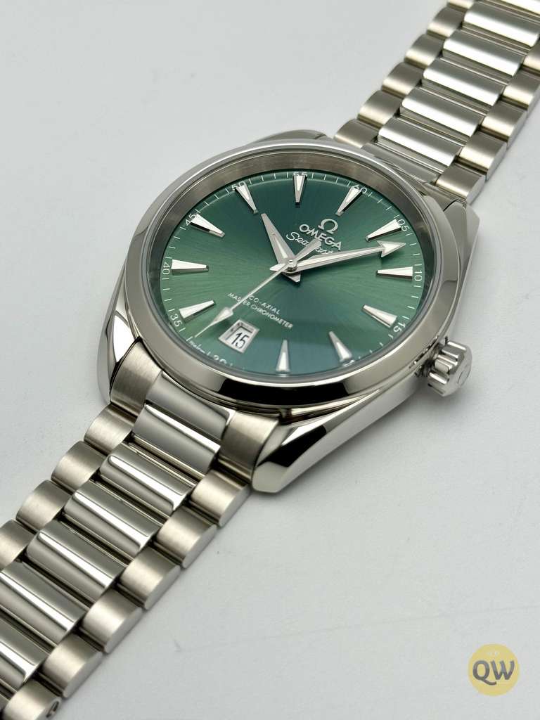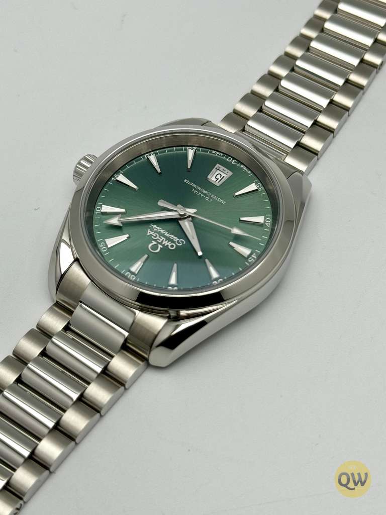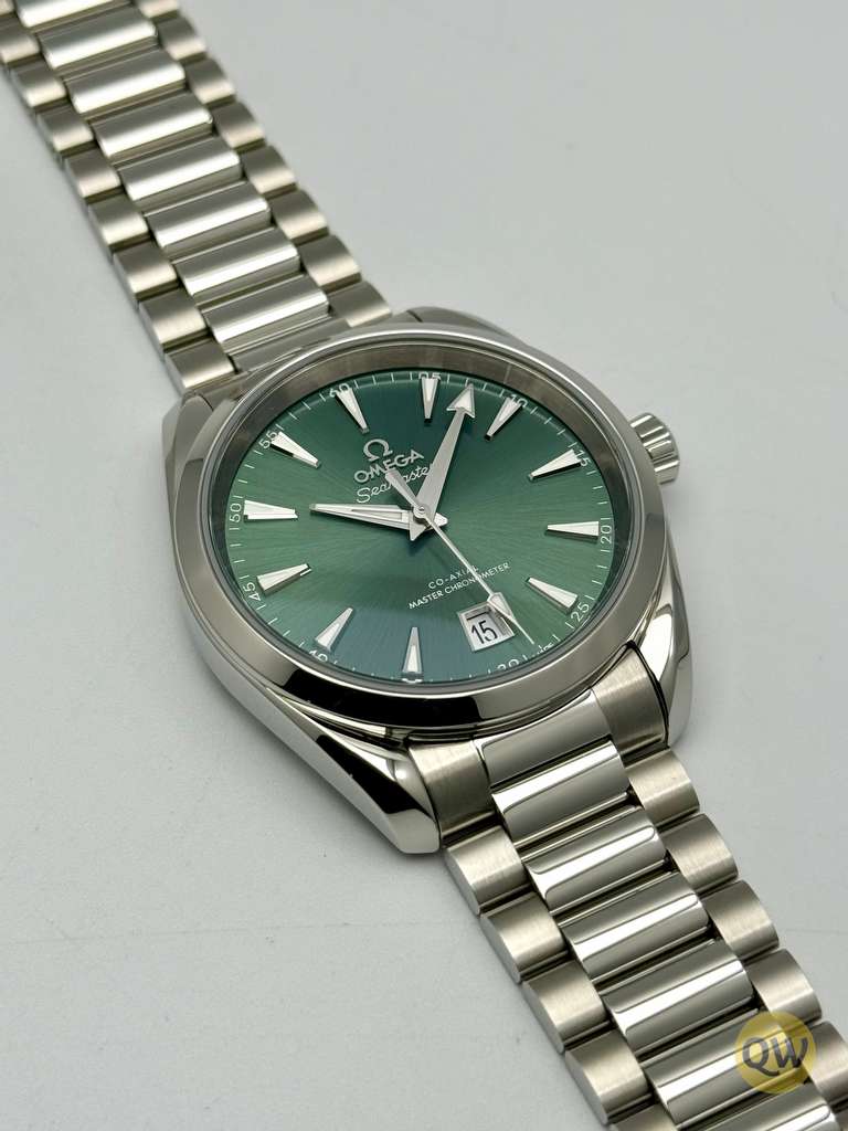 The Seamaster Aqua Terra is a superb tribute to OMEGA’s rich maritime heritage. This 38 mm model, has a symmetrical case and crown in fully polished stainless steel and a wave-edged design featured on the back. The bay green dial, fashioned from brass, is lacquered and sun-brushed from the centre. There is a date window at 6 o'clock and rhodium-plated hands and indexes filled with white Super-LumiNova. Presented on a polished and brushed bracelet, with beautifully rounded links, this classic Seamaster is powered by OMEGA’s Co-Axial Master Chronometer calibre 8800, certified at the industry’s highest standard by the Swiss Federal Institute of Metrology (METAS).