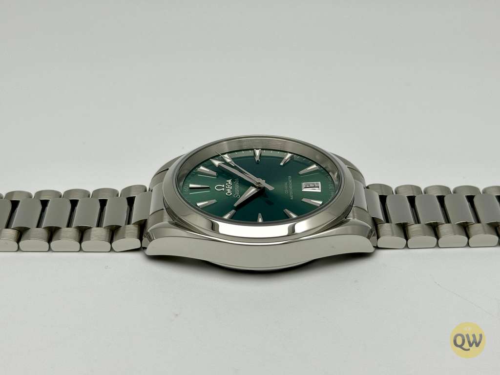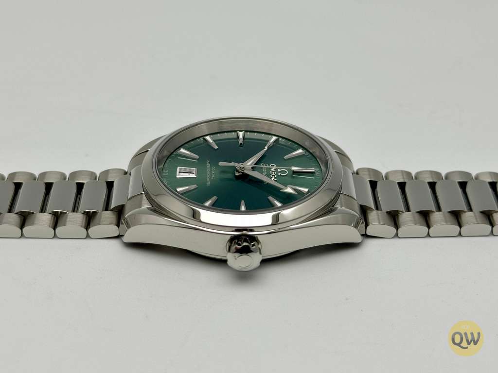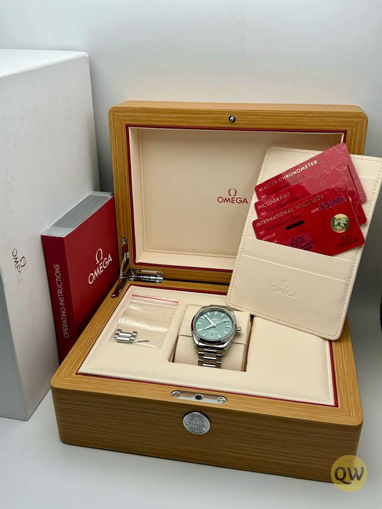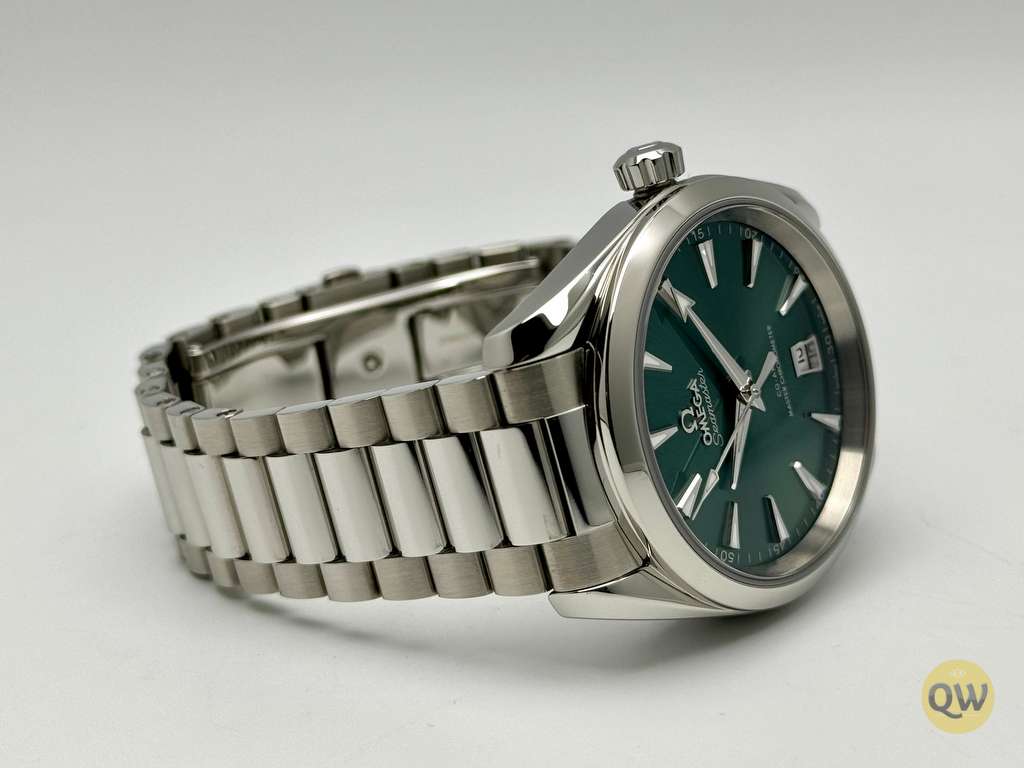 The Seamaster Aqua Terra is a superb tribute to OMEGA’s rich maritime heritage. This 38 mm model, has a symmetrical case and crown in fully polished stainless steel and a wave-edged design featured on the back. The bay green dial, fashioned from brass, is lacquered and sun-brushed from the centre. There is a date window at 6 o'clock and rhodium-plated hands and indexes filled with white Super-LumiNova. Presented on a polished and brushed bracelet, with beautifully rounded links, this classic Seamaster is powered by OMEGA’s Co-Axial Master Chronometer calibre 8800, certified at the industry’s highest standard by the Swiss Federal Institute of Metrology (METAS).