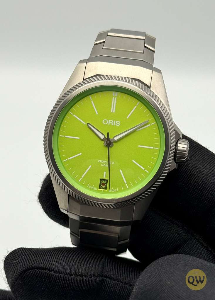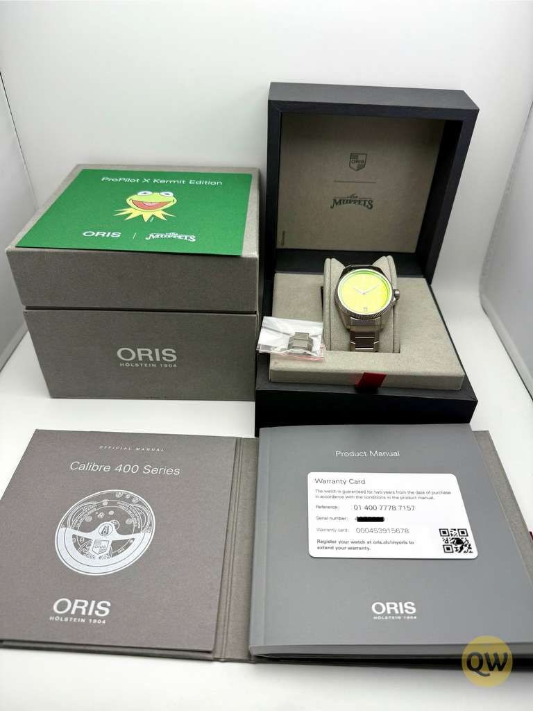 Meet the collaboration between Oris and Disney’s The Muppets Kermit the Frog. Oris has been creating watches that bring pure joy since 1904. A collaboration with Disney’s The Muppets Kermit the Frog is sure to create magic. Because he too has been putting a smile on everyone’s face for generations. For the collaboration with Disney, the designers give the ProPilot X a fresh green look. The first day of each month is transformed into 'Kermit Day', when the cheerful face of Kermit the Frog appears in the date window. A powerful aesthetic deserves a powerful caliber. This ProPilot X Kermit edition is equipped with the completely in-house designed Calibre 400, an automatic movement with three performance promises: enhanced anti-magnetism, a power reserve of no less than 5 days and a 10-year warranty. Oris rightly calls this ingenious innovation The New Standard in the Swiss watch market. In addition, the ProPilot X Kermit Edition 01 400 7778 7157-Set is durably finished with a titanium case and bracelet, scratch-resistant sapphire crystal with anti-reflective coating, sapphire crystal screw back with special inscription and secure folding clasp.