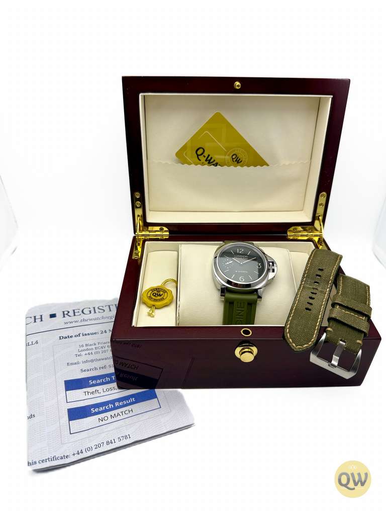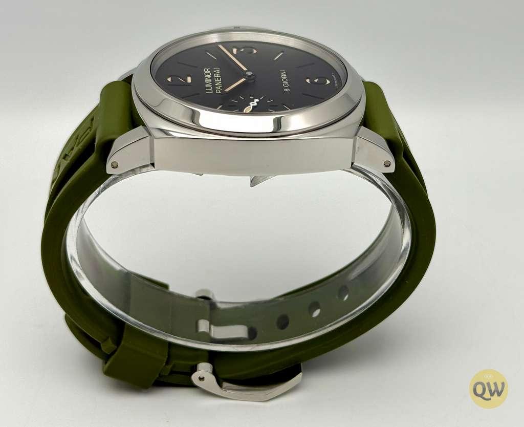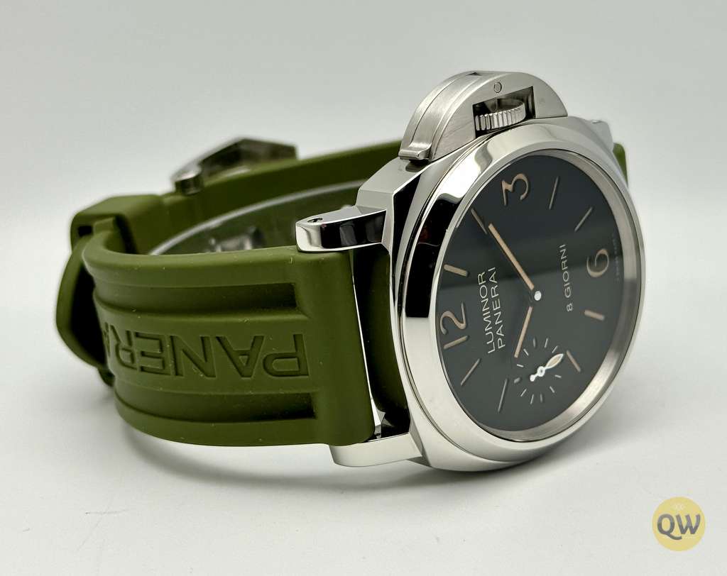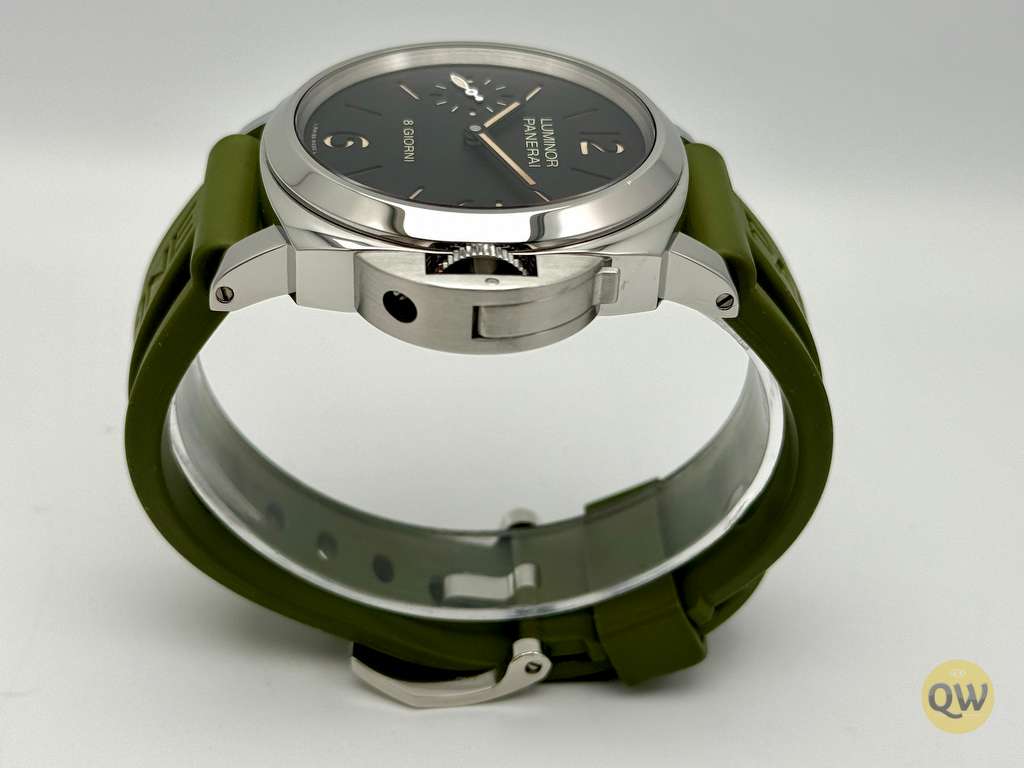 This Luminor 8 Days is in near mint condition (small imperfection on the bezel between 1 and 2 marker) and comes with our QW wooden box. Rubber and green Aron Bespoke canvas strap. 3 months warranty.