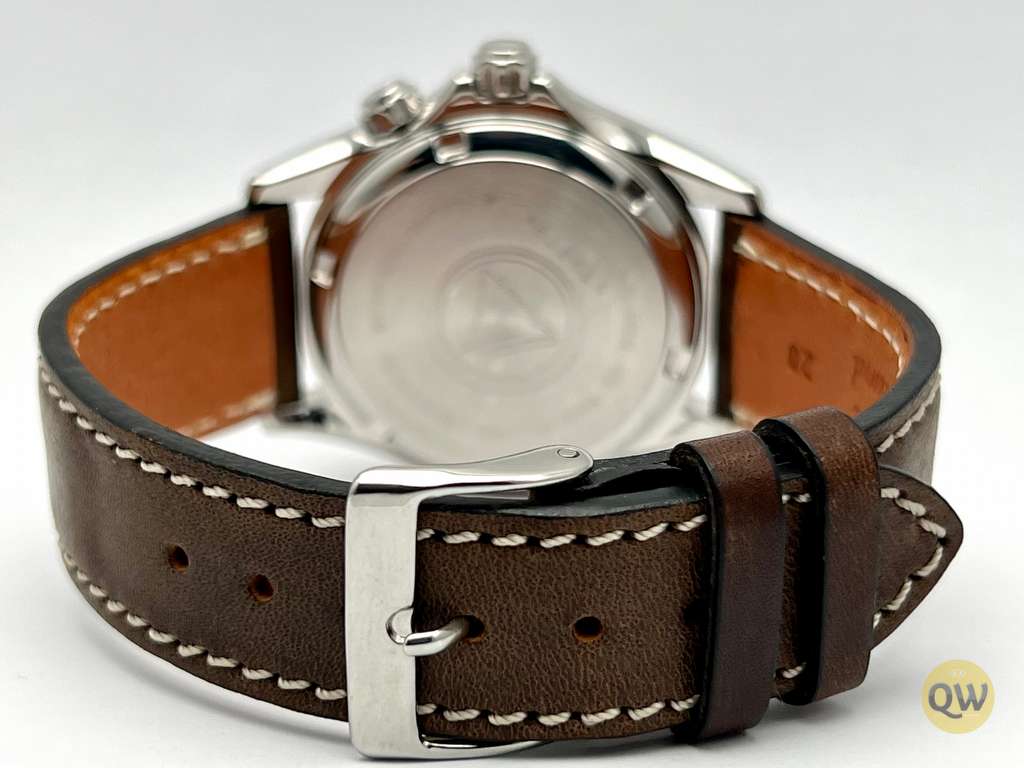 The iconic Seiko Alpinist has a striking emerald green dial with elegant gold-tone accents. It is beautifully styled with a brown leather band and protected with scratch-resistant sapphire glass, and it comes in a durable stainless steel case and Seiko automatic 6R15 Caliber.