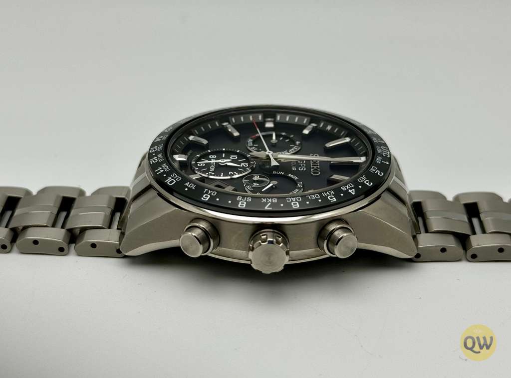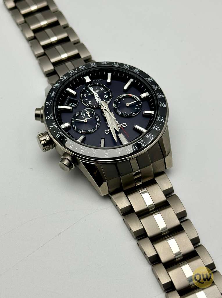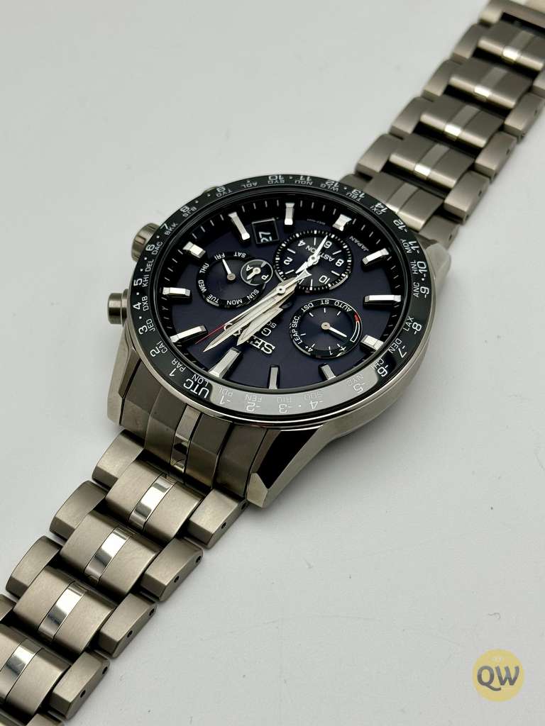 This Astron model has the more wearable 42.9mm titanium case and the ceramic/titanium bezel. Including the Sapphire crystal with Super-clear coating, Lumibrite on hands and index(es) and tje Three-fold clasp with push button release.