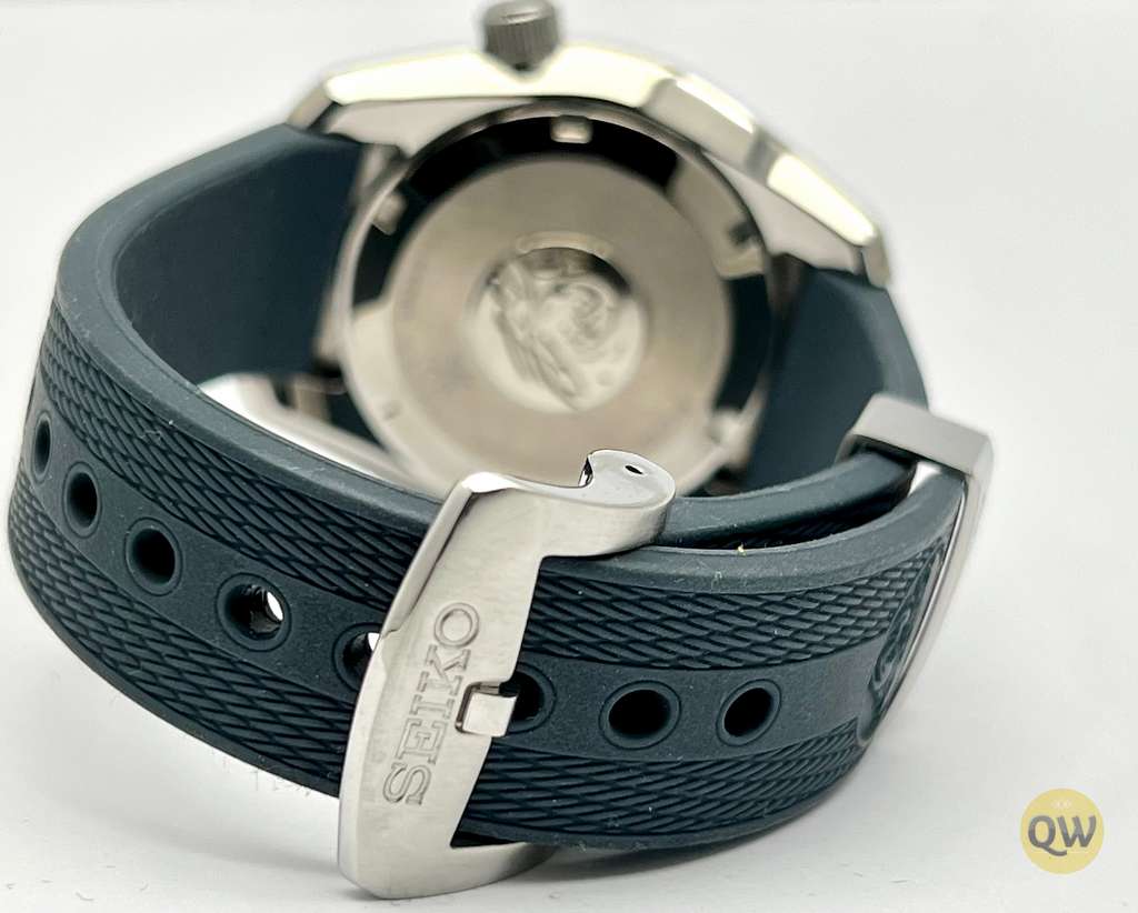 Inside the case we find the in-house automatic calibre 6R35. Beating at 3Hz, this time-and-date calibre stores a comfortable amount of energy, boasting a 70h power reserve when fully wound.