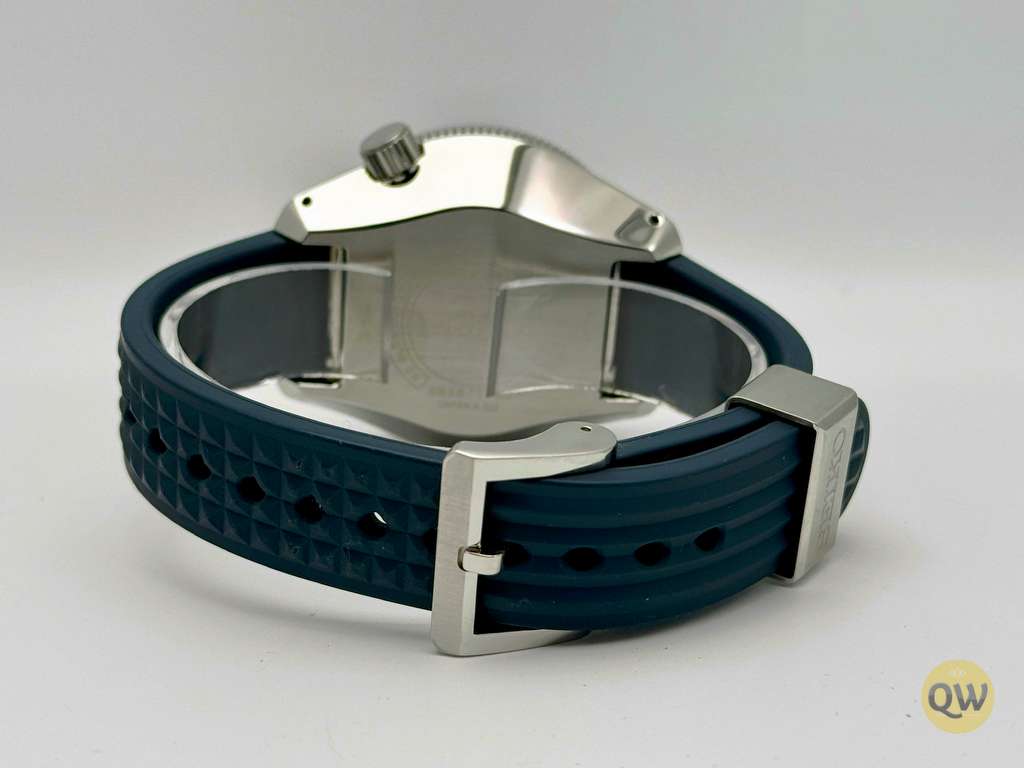 A dual-curved sapphire crystal with anti-reflective coating ensures durability and clarity, while the unidirectional rotating bezel provides precise dive timing. With 300 meters of water resistance, a screw-down crown, and Seiko’s proven professional diver construction, this watch is engineered for demanding underwater use.