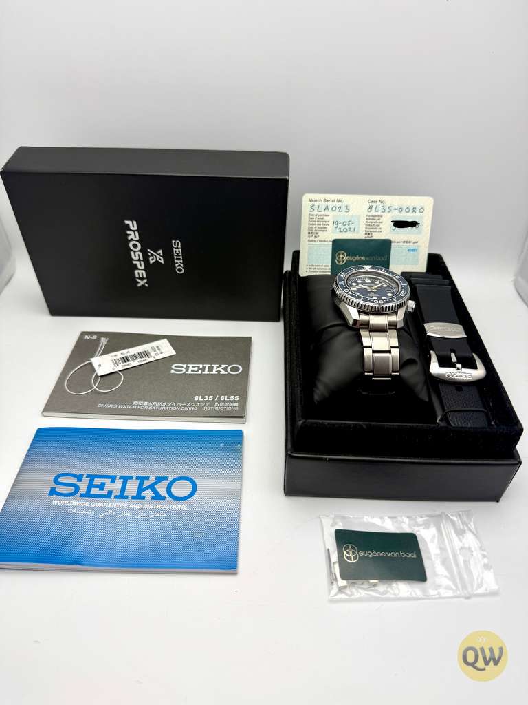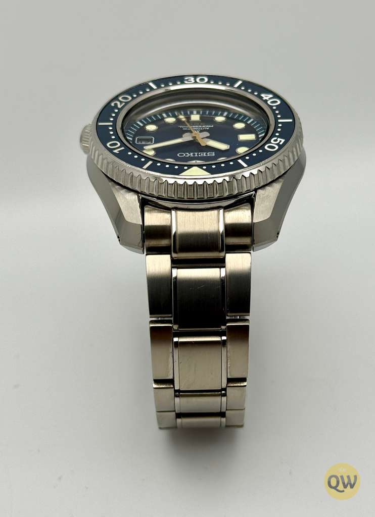 The Seiko Marinemaster 300 Blue, reference SLA023J1, is a professional diver’s watch designed for serious underwater use. The watch features a 44.3 mm stainless steel case paired with a deep blue dial. Large luminous indexes, bold hands, and excellent legibility define its tool-focused character.