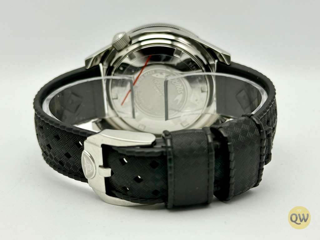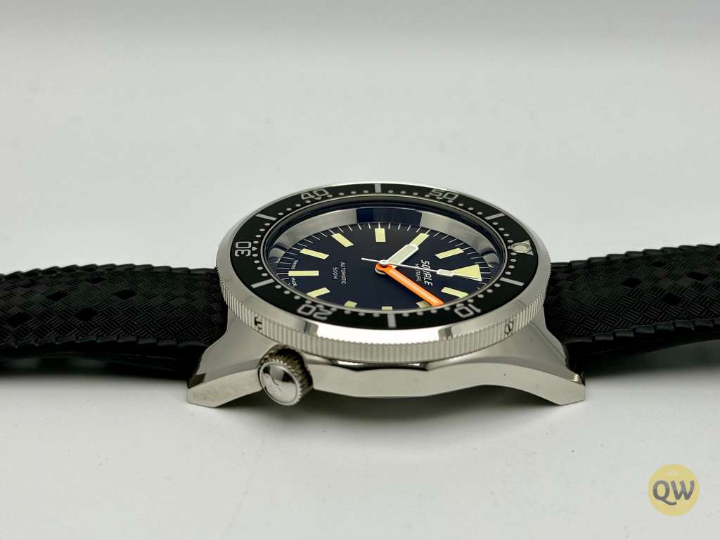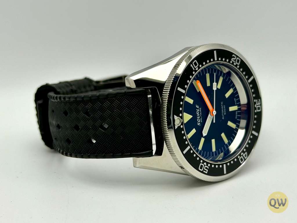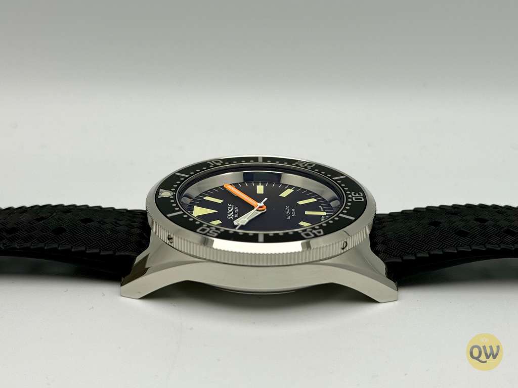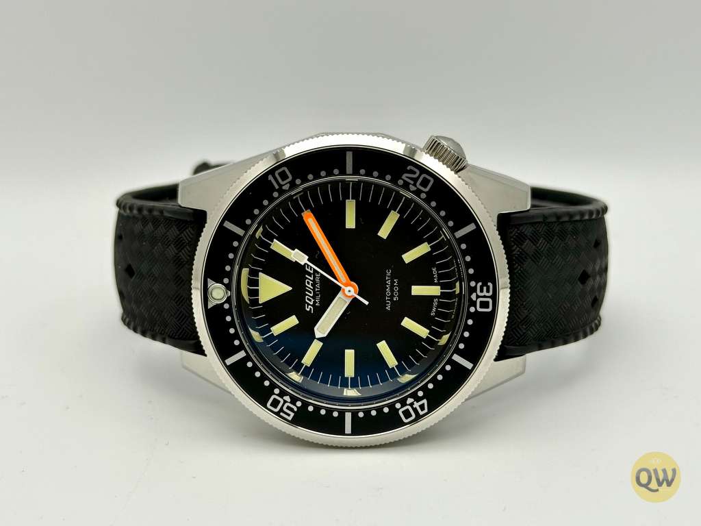 The Squale Militaire is one of the most populair professional dive watches of Squale. With a 42mm Polished 316L stainless steel case with a screw-in back. The black dial features larger indexes with double the amount of SuperLuminova on the hour markers and hands. Includes a uni-directional snap-on bezel with sixty-minute markings. The SuperLuminova PIP is protected via a sapphire glass guard. Includes a scratch-resistant flat sapphire crystal. Comes on a tropical dive strap with the Squale buckle.