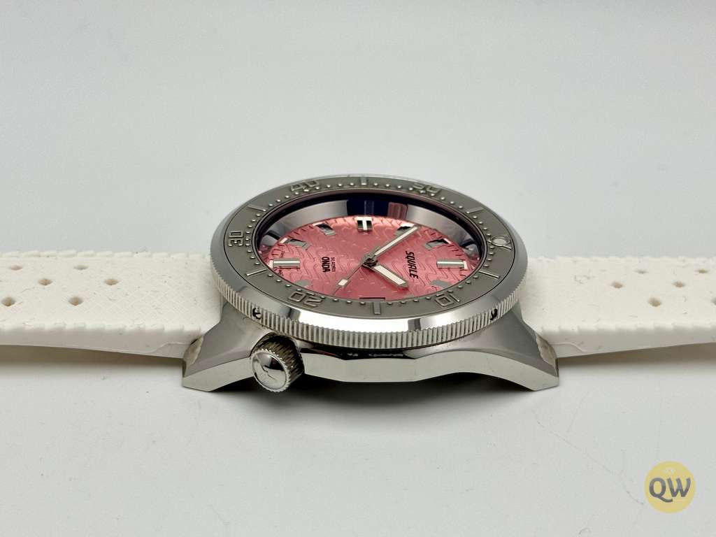 Squale 1521-026 ONDA Pink / 50 Atmos Pink ONDA is designed for the professional diver, but even more beautiful on the wrist. The classic 500-meter professional diver with the characteristic and famous "von Büren" case. A case that was part of lots of famous dive-watches over the decades, as Squale supplied these also to other big and small Swiss brands. Recognition for the sheer quality of engineering and timeless design by Squale founder: Charles von Büren
