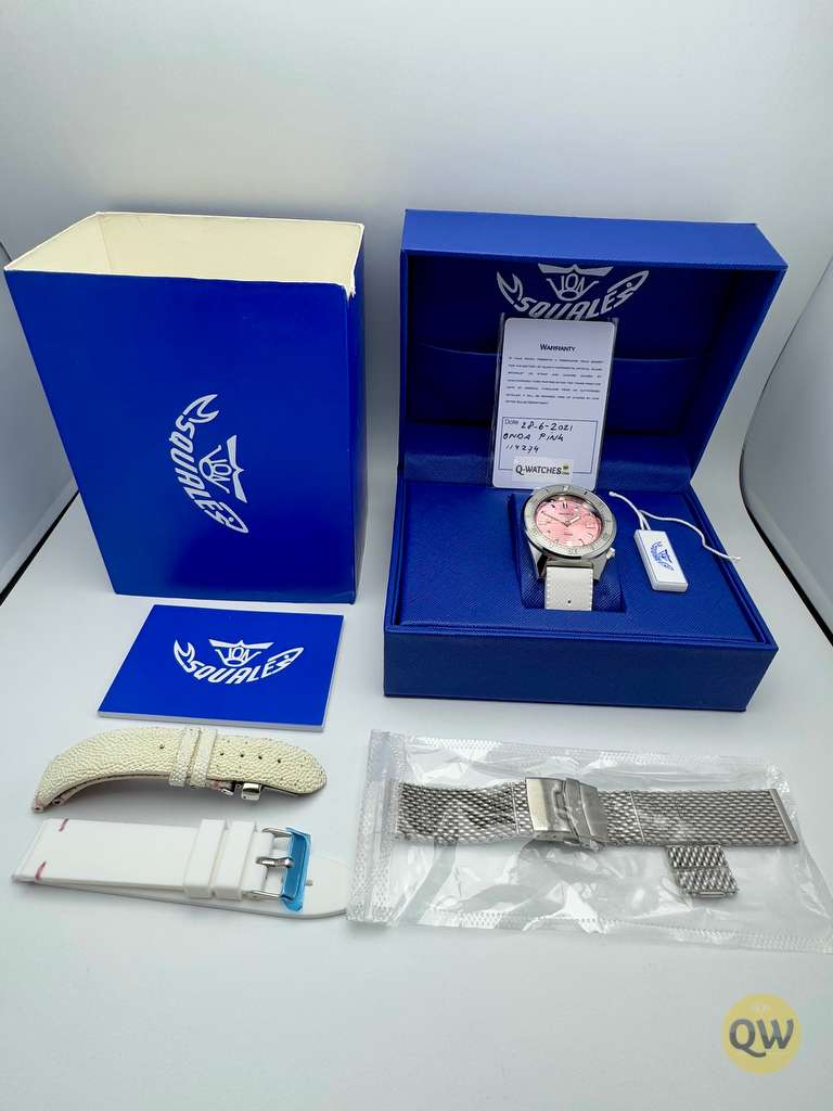 Accessories: Full set, extra Squale Mesh bracelet & 2 Squale leather/rubber straps