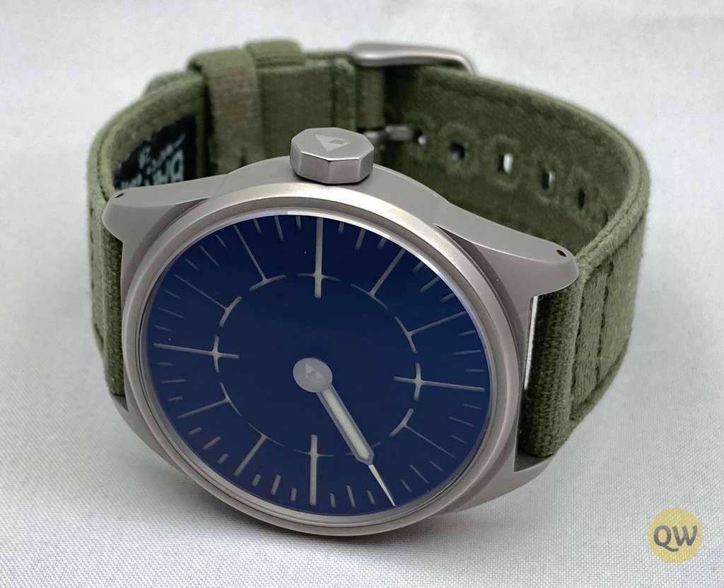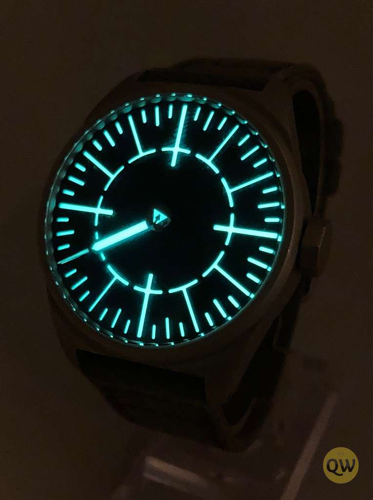 Its revolving, lumed seconds disk is quite uncommon and will start many conversations indeed. Since the dial has no logo and text, it can be used in 4 ways (hence the name Quattro)