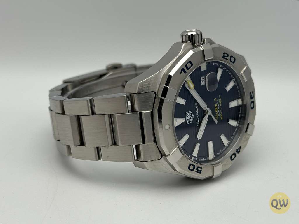 The TAG Heuer Aquaracer, reference WAY2012.BA0927, features a 43 mm stainless steel case with a striking sunray blue dial, accented by luminous hands and indexes for excellent readability in all conditions. Powered by the TAG Heuer Calibre 5 automatic movement (based on the Sellita SW200-1, with a 38-hour power reserve and a frequency of 28,800 vph), it offers hours, minutes, central seconds, and a date display positioned at 3 o’clock.