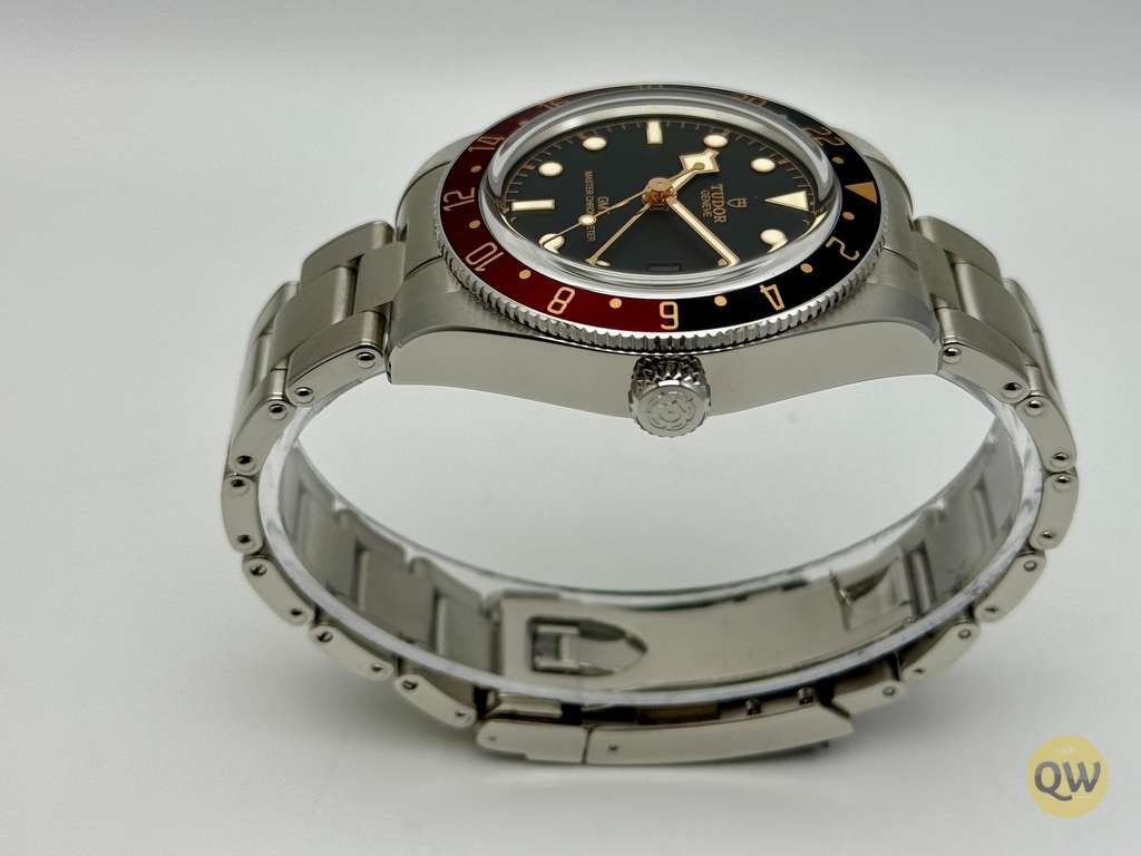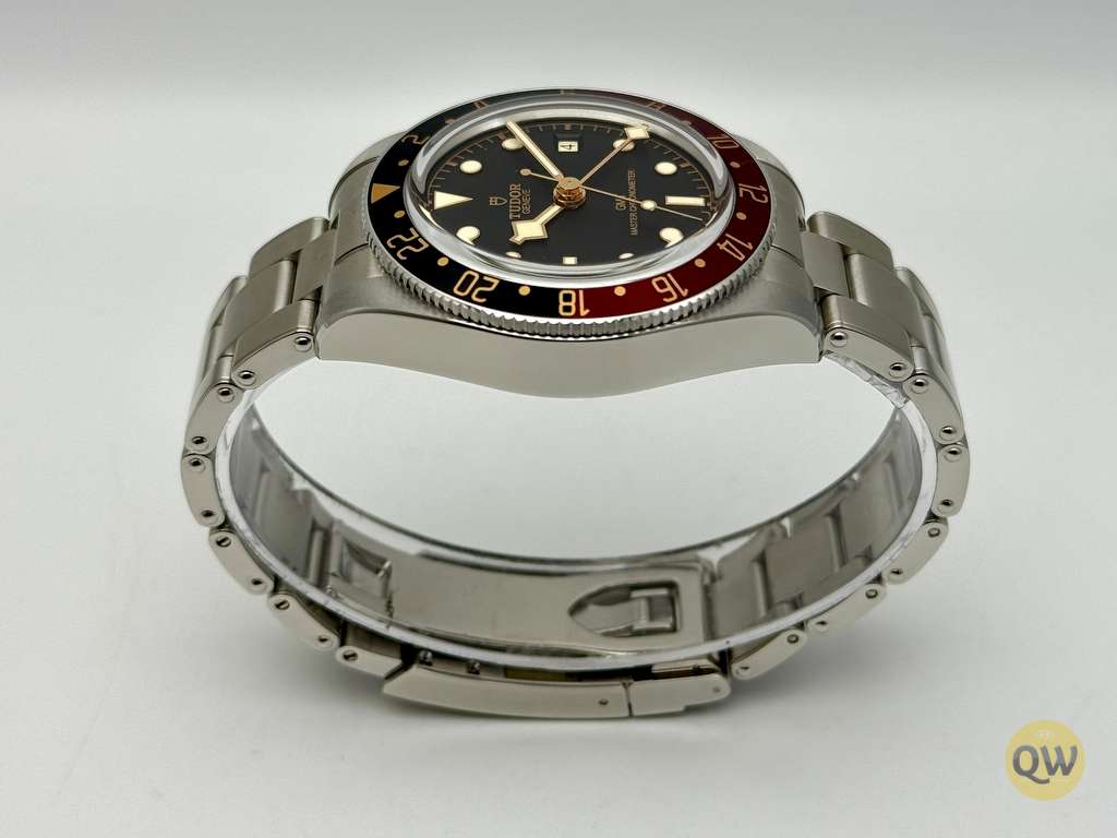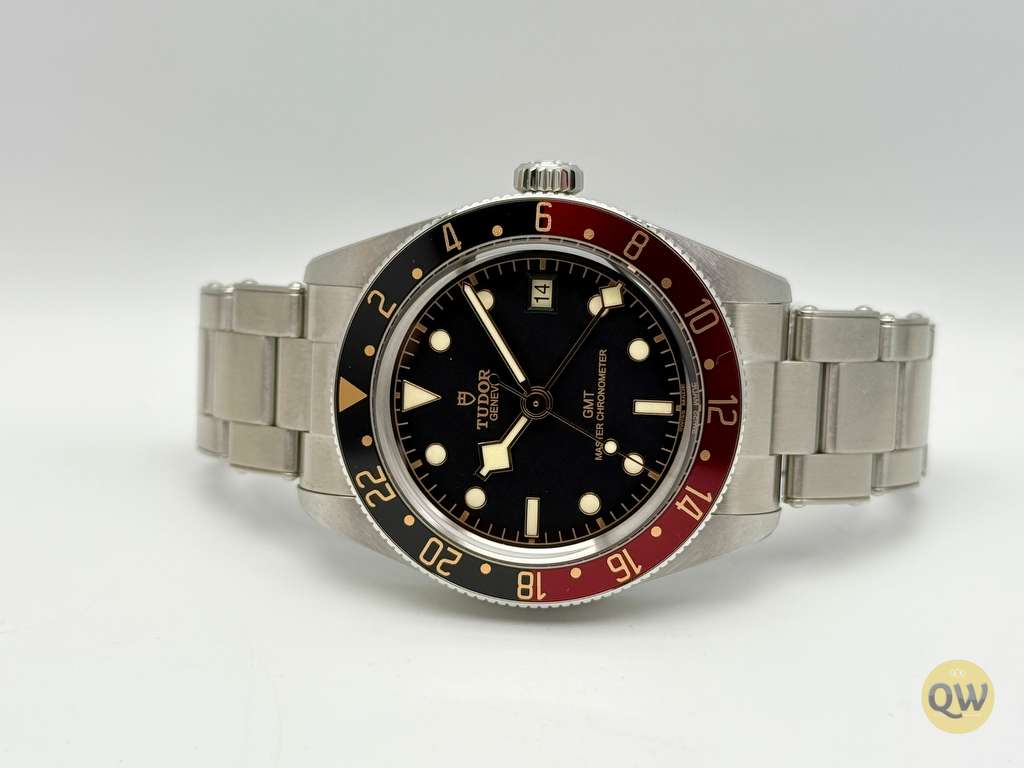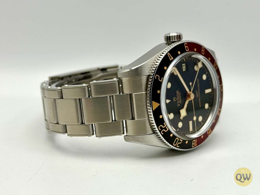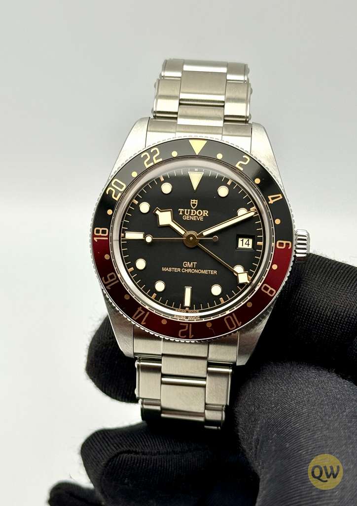 The domed black dial features Tudor’s iconic snowflake hands and bold lume-filled markers, ensuring excellent readability day and night. Powering this model is the in-house Tudor Calibre MT5450-U — a COSC-certified automatic movement with an impressive 65-hour power reserve, silicon balance spring, and built-in GMT complication. It’s METAS Master Chronometer certified, offering magnetic resistance and top-tier accuracy under all conditions. This Tudor is fitted with a solid stainless steel riveted bracelet that combines vintage charm with modern durability. With 200 meters of water resistance and a screw-down crown, it’s as ready for the sea as it is for the skies.