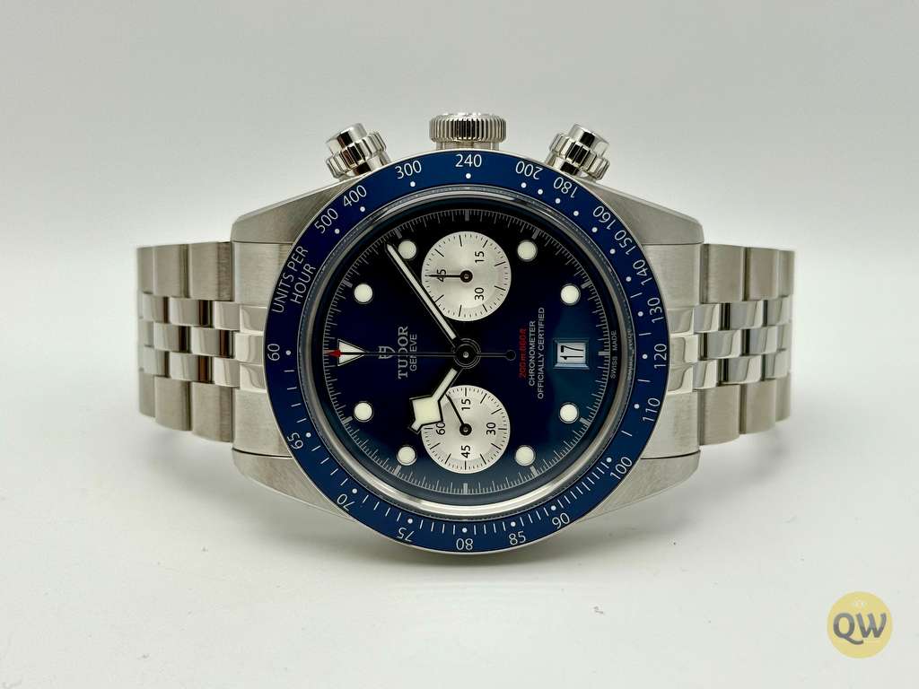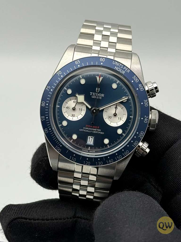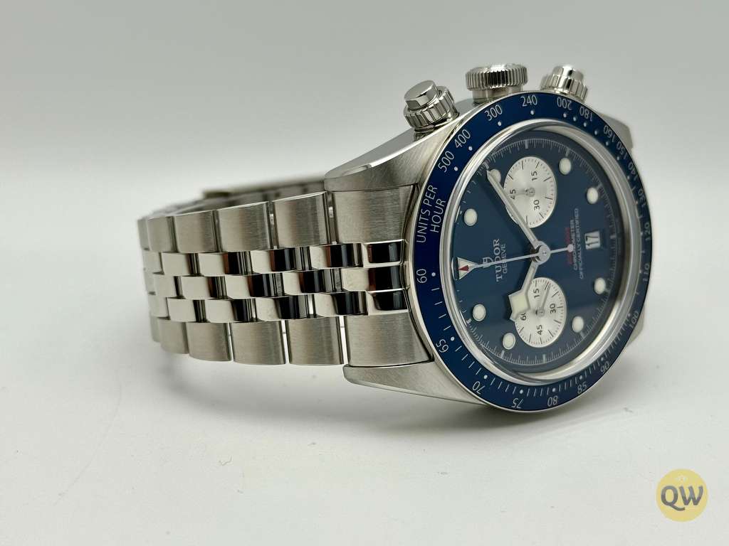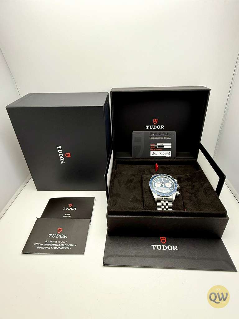 This Tudor Black Bay Chrono Boutique Edition is new and unworn, and comes as a full set with factory warranty until September 2030.