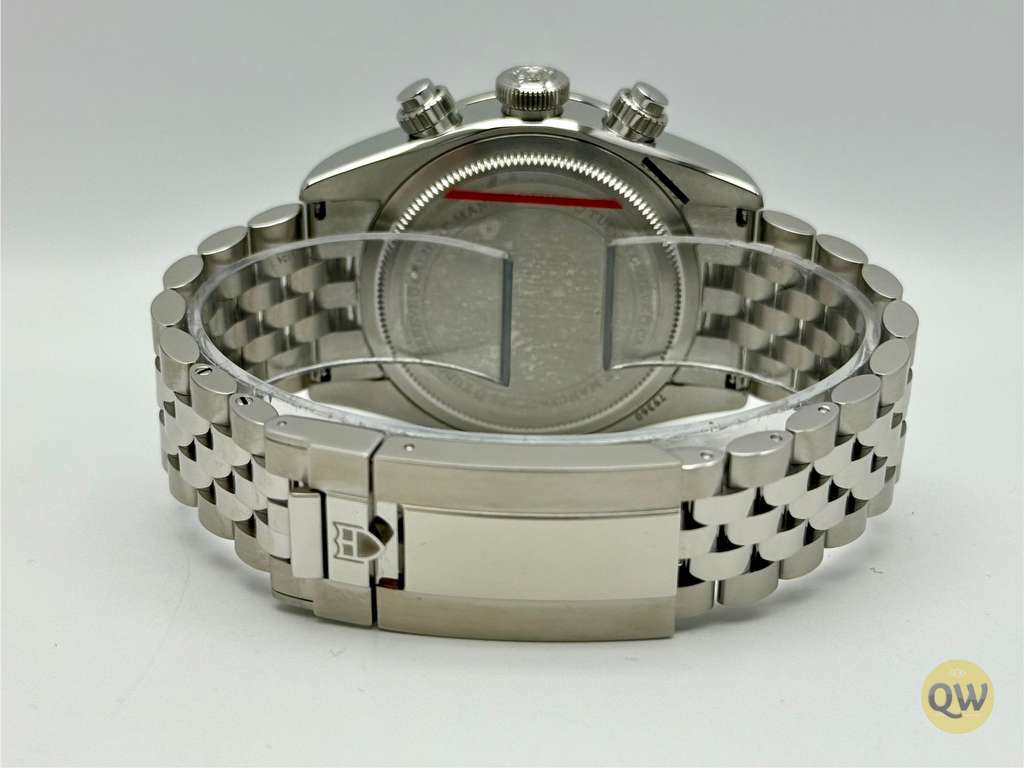 A domed sapphire crystal ensures durability and clarity, while the tachymeter bezel adds classic motorsport-inspired functionality. Water resistance up to 200 meters underlines its professional tool-watch credentials. The model is fitted on a stainless steel bracelet with Tudor’s folding clasp and safety catch for comfort and reliability.